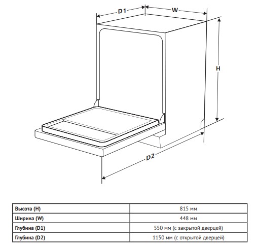 Схема встраивания 2 для посудомоечной машины Korting KDI 45017