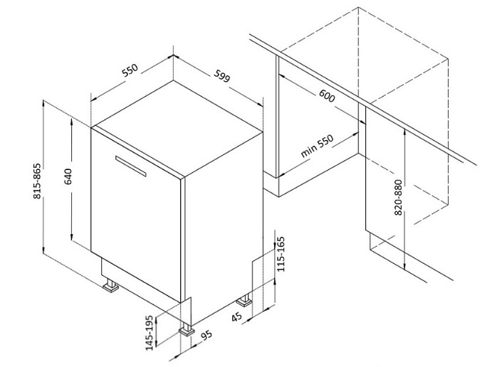 Схема встраивания 2 для посудомоечной машины Korting KDI 60977