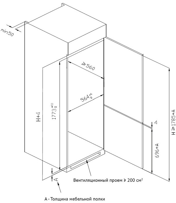 Схема встраивания для холодильника Korting KSI 17633 CLF