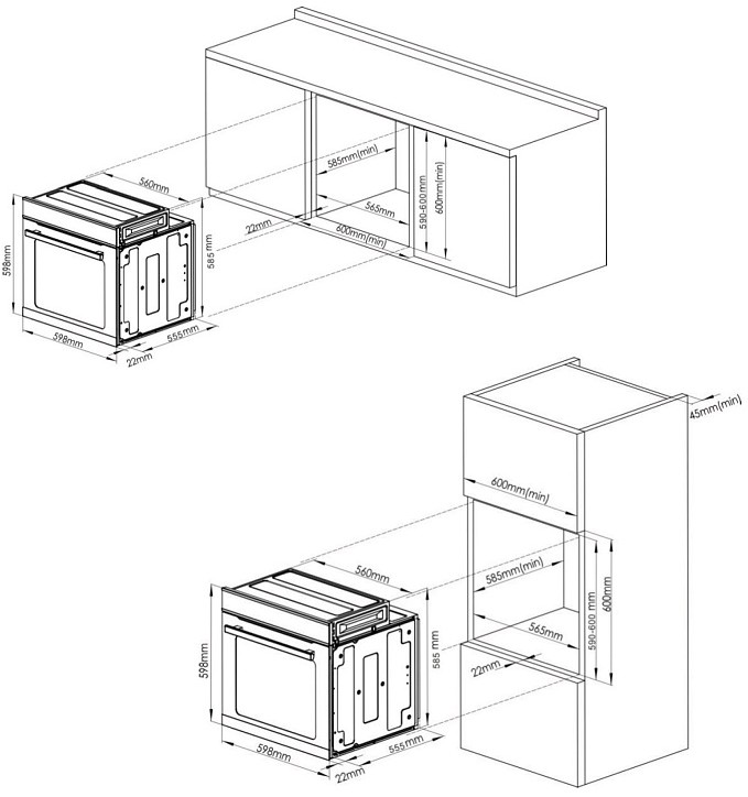 Схема встраивания для духового шкафа Korting OKB 8731 CPGN