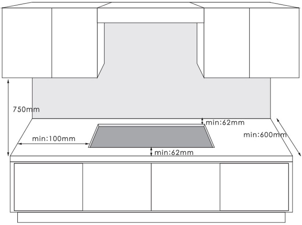 Схема встраивания для варочной панели Korting HGG 6766 ICPTN