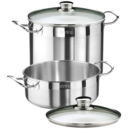Набор посуды Korting K 2422 X включает в себя 2 вместительные кастрюли из высококачественной нержавеющей стали и крышки из термостойкого стекла.