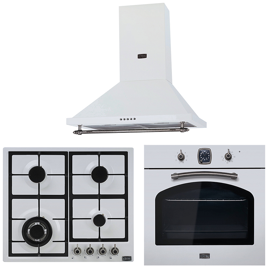 Вытяжка Korting KHC 6750 RSI дополняет этот комплект, обеспечивая эффективное удаление запахов и дыма. Она может работать в двух режимах — отвода и циркуляции, а три скорости позволяют настроить ее работу в зависимости от потребностей. Белый цвет вытяжки гармонично сочетается с остальной техникой в комплекте.