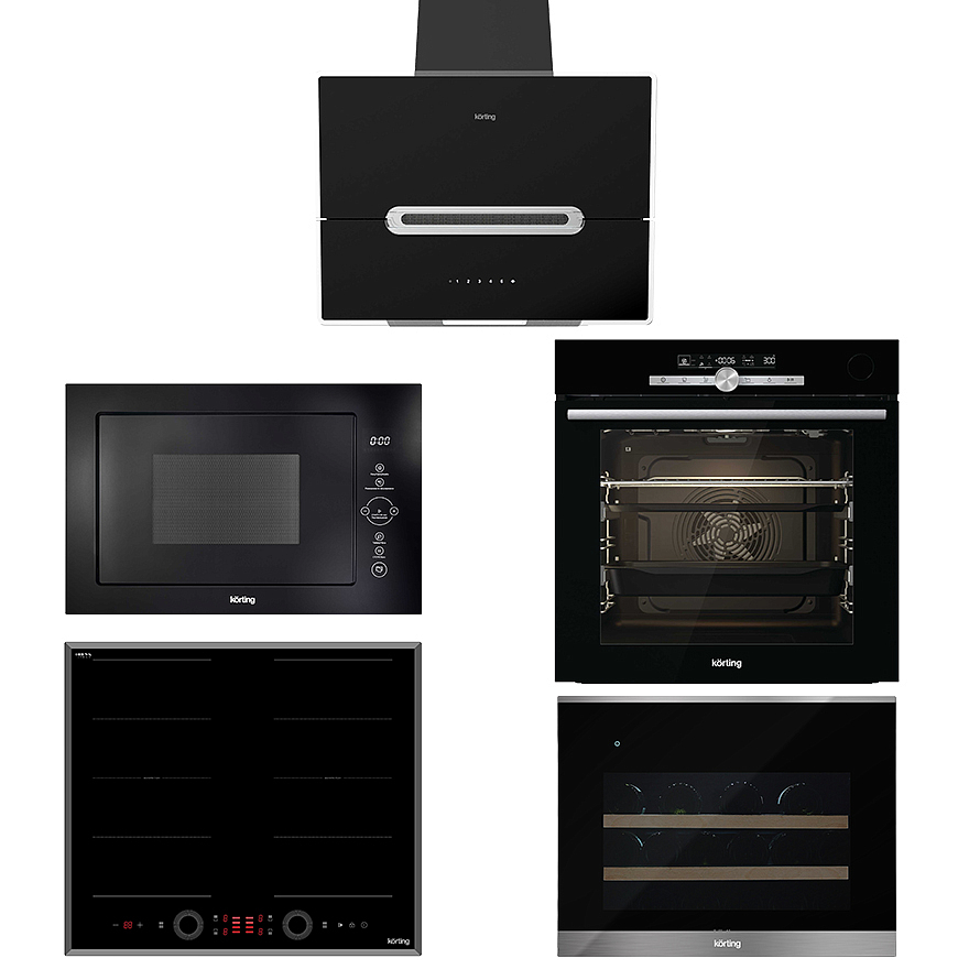 Комплект бытовой техники от Korting объединяет в себе современный дизайн и функциональность, обеспечивая максимальное удобство в использовании. Черный цвет придает аппаратам строгий и элегантный вид, позволяя им гармонично вписаться в любой интерьер кухни.