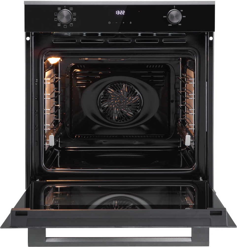 Духовой шкаф Korting OKB 1321 GNBX выполнен в черном цвете и оснащен цифровым дисплеем. Тройное остекление дверцы защитит от ожогов. Поворотные переключатели утапливаются, что облегчит очистку. Внутреннее освещение обеспечит полный обзор рабочей камеры. Таймер позволит настроить прибор на отключение через заданное время.