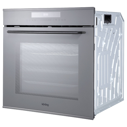 Духовой шкаф Korting OKB 1331 S GBXGR имеет строгий современный корпус в сером оттенке коллекции Spectrum подчеркнёт любую кухонную меблировку и оставит впечатление премиального решения. Передняя панель изготовлена из черной нержавеющей стали, что гарантирует устойчивость к следам от пальцев и долговечность отделки при регулярной эксплуатации. Эргономичная дверца с тремя стеклами обеспечивает надёжную термоизоляцию и визуальную контрольную зону, а встроенная LED-подсветка из двух ламп равномерно озаряет камеру, упрощая процесс наблюдения за приготовлением без необходимости открывать дверцу.