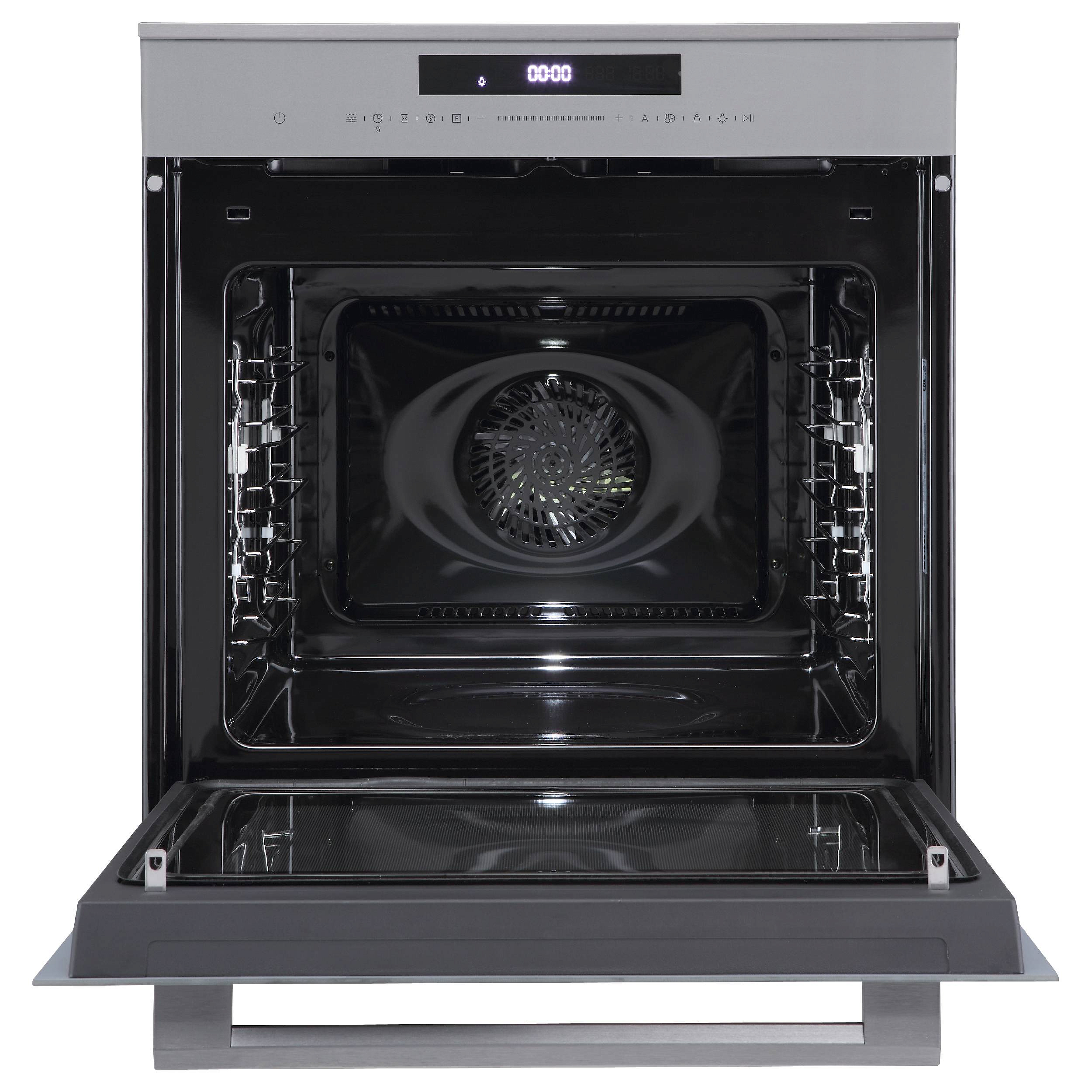 Особое внимание уделено деталям: дверца выполнена из трёхслойного стекла, что снижает нагрев внешней поверхности и упрощает уход. Внутреннее LED-освещение равномерно подсвечивает камеру, позволяя следить за процессом без открывания дверцы. Сенсорная панель Full Touch Control с белым дисплеем обеспечивает быстрый доступ ко всем функциям — от выбора режима до настройки таймера с отложенным запуском, звуковым оповещением и автоматическим завершением работы. Термостат точно поддерживает температуру в диапазоне от 30 до 250 °C, а энергоэффективность класса A снижает расходы при частом использовании.