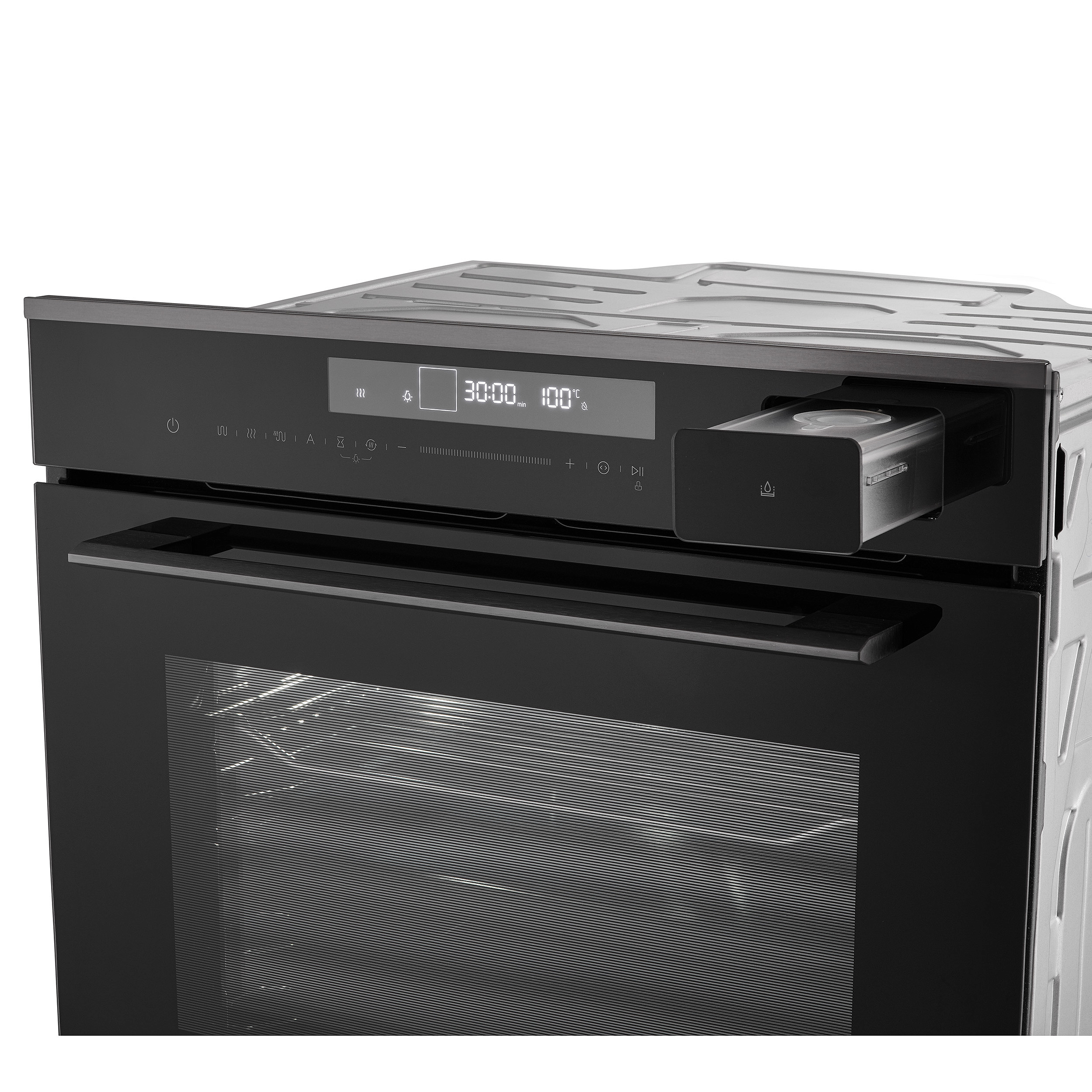 Модель входит в коллекцию Spectrum и выполнена в глубоком чёрном цвете с акцентами из нержавеющей стали на ручках и панели. Такое решение придаёт устройству сдержанный, профессиональный вид, легко вписывающийся в интерьеры от минимализма до современной классики. Матовая поверхность корпуса устойчива к царапинам и не собирает отпечатки пальцев.
