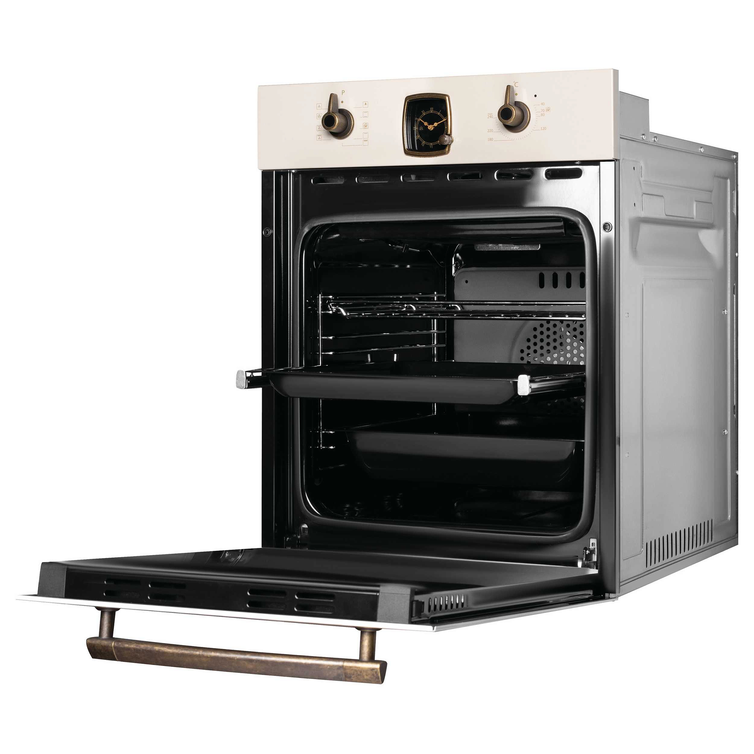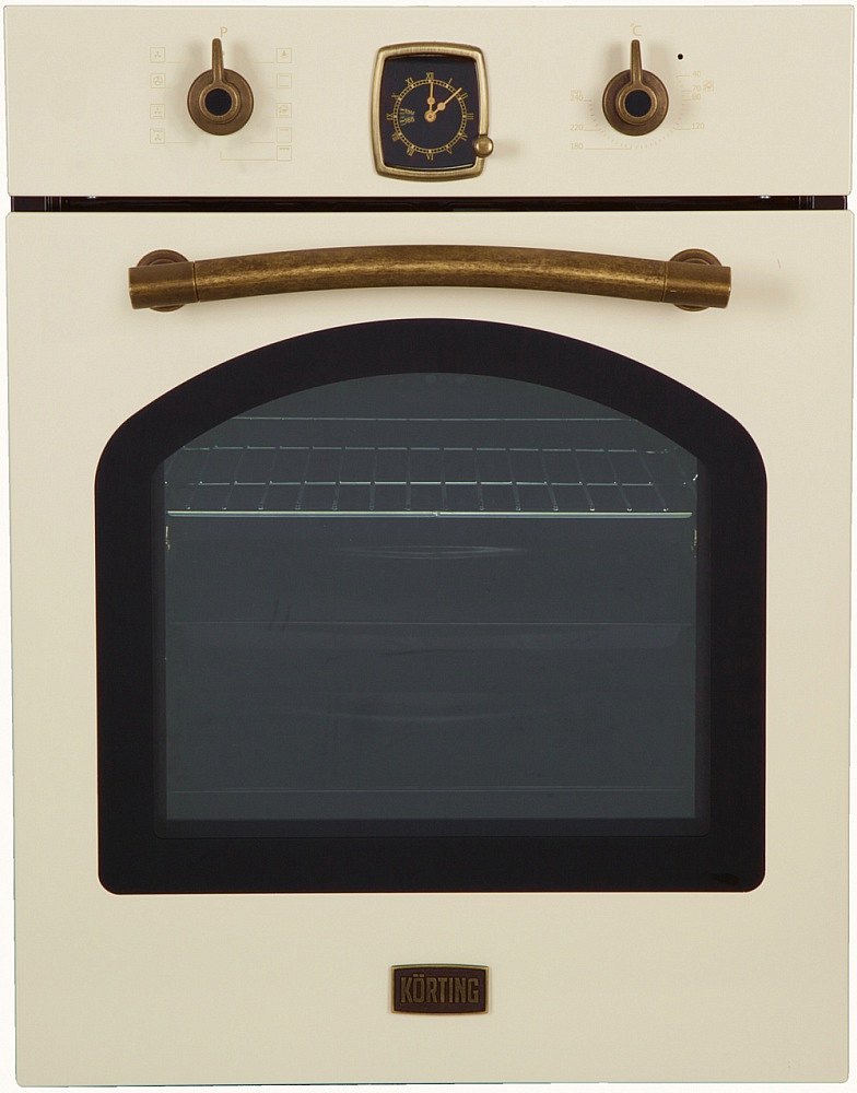 Духовой шкаф Korting OKB 4941 CRB относится узким моделям и подойдет для маленькой кухни. Выполнен в бежевом цвете с элементами бронзы. Его габариты: высота – 59.5 см, ширина - 45 см, глубина – 56 см. Поэтому вы без труда сможете ее установить даже на маленькой кухне. Благодаря подсветке внутренней камеры можно удобно следить за процессом готовки пищи. Также присутствует таймер и звуковой сигнал. Вы можете не беспокоиться о том, что забудете выключить во время осуществить отключение, таймер это сделает за Вас, а звуковой сигнал скажет об окончании работы.