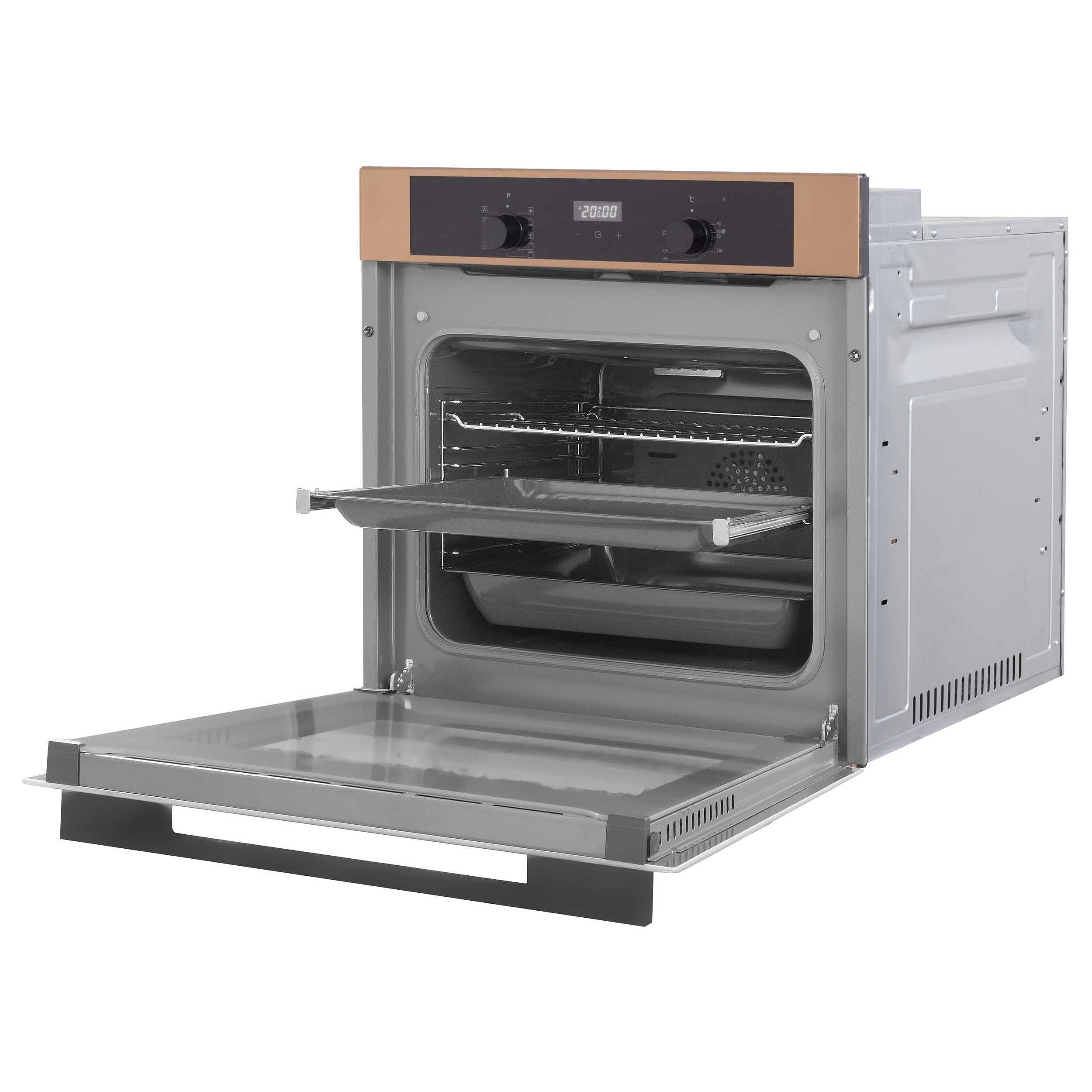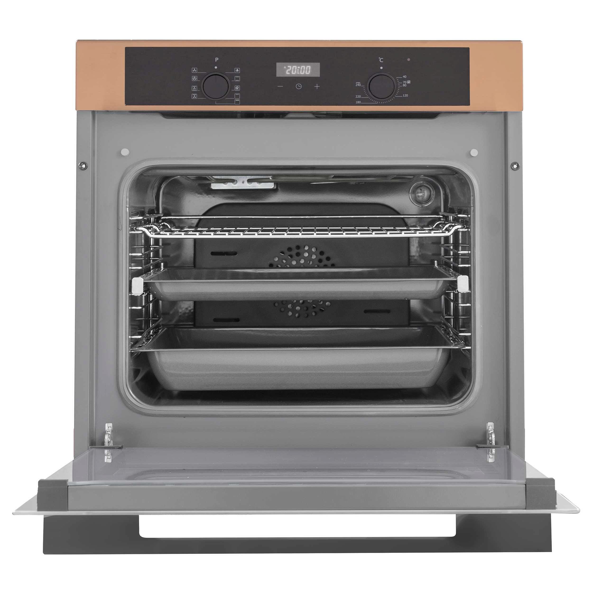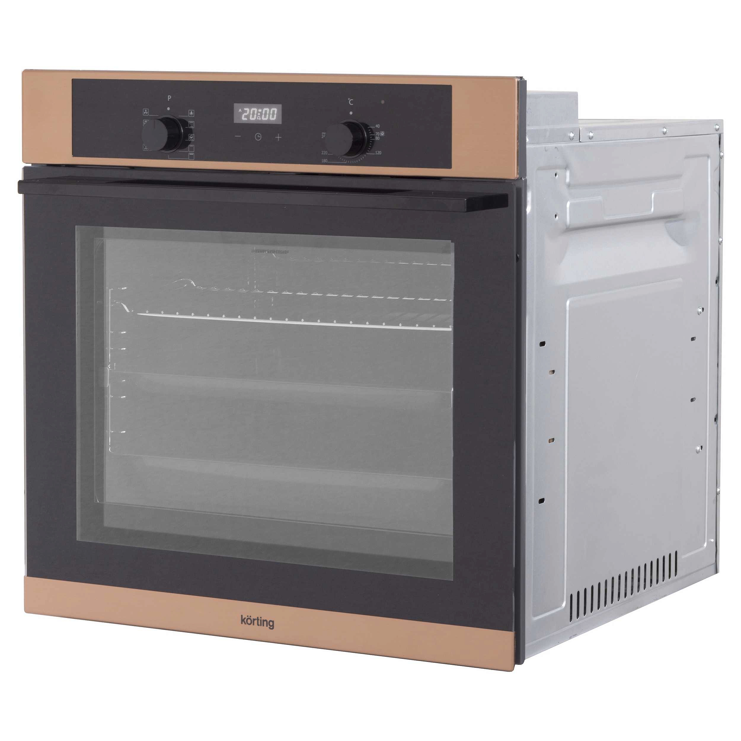 Духовой шкаф Korting OKB 691 CSC цвета меди и черного стекла лаконично выглядит и хорошо вписывается в интерьер современной кухни и сочетается с современными технологиями, в том числе уменьшающими расход электричества — энергопотребление соответствует классу А. В его 60-ти литровой камере Вы сможете готовить несколько блюд одновременно. Электронная панель управления позволяет быстро разобраться в настройке программ и не требует чрезмерных усилий. Смена температуры и режима осуществляется за счет поворотных или сенсорных переключателей.
