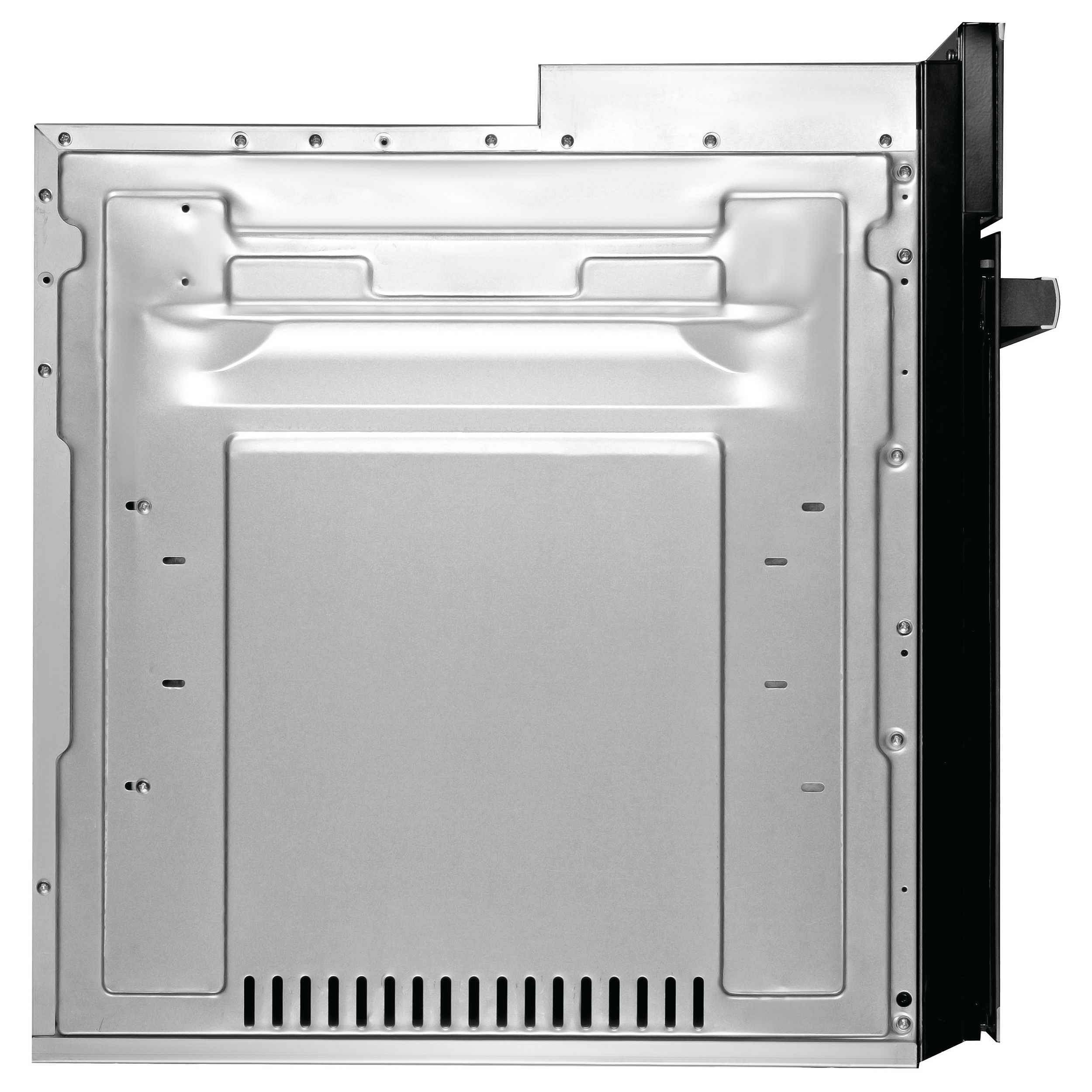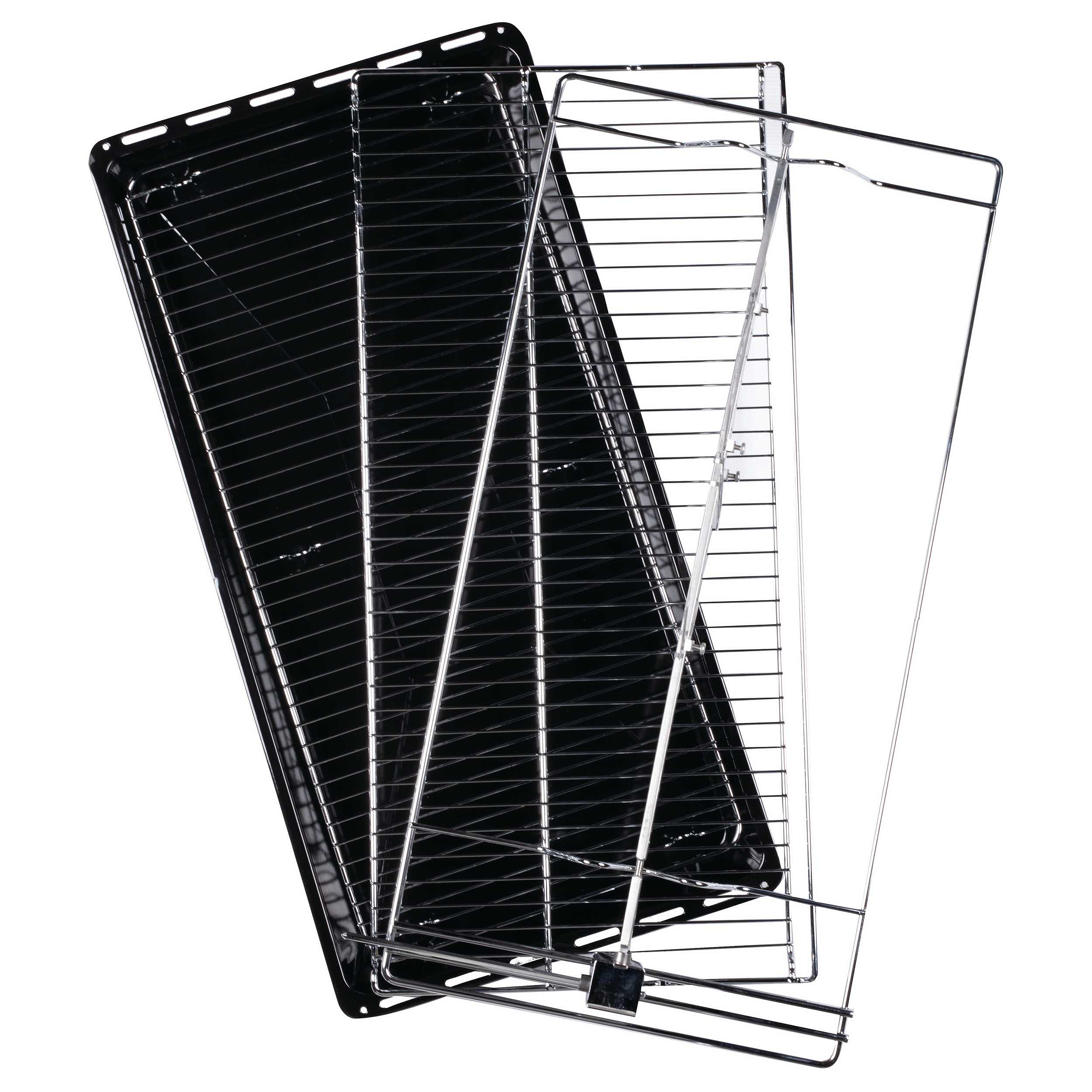 В комплекте — хромированная решётка, стандартный и глубокий противни, а также вертел для равномерного запекания мяса и птицы. Телескопические направляющие на одном уровне облегчают извлечение посуды, снижая риск ожогов и проливов. Тройное остекление дверцы удерживает тепло внутри и минимизирует нагрев фасада, а встроенная лампа накаливания позволяет контролировать процесс без открытия камеры — это экономит энергию и сохраняет сочность блюд.