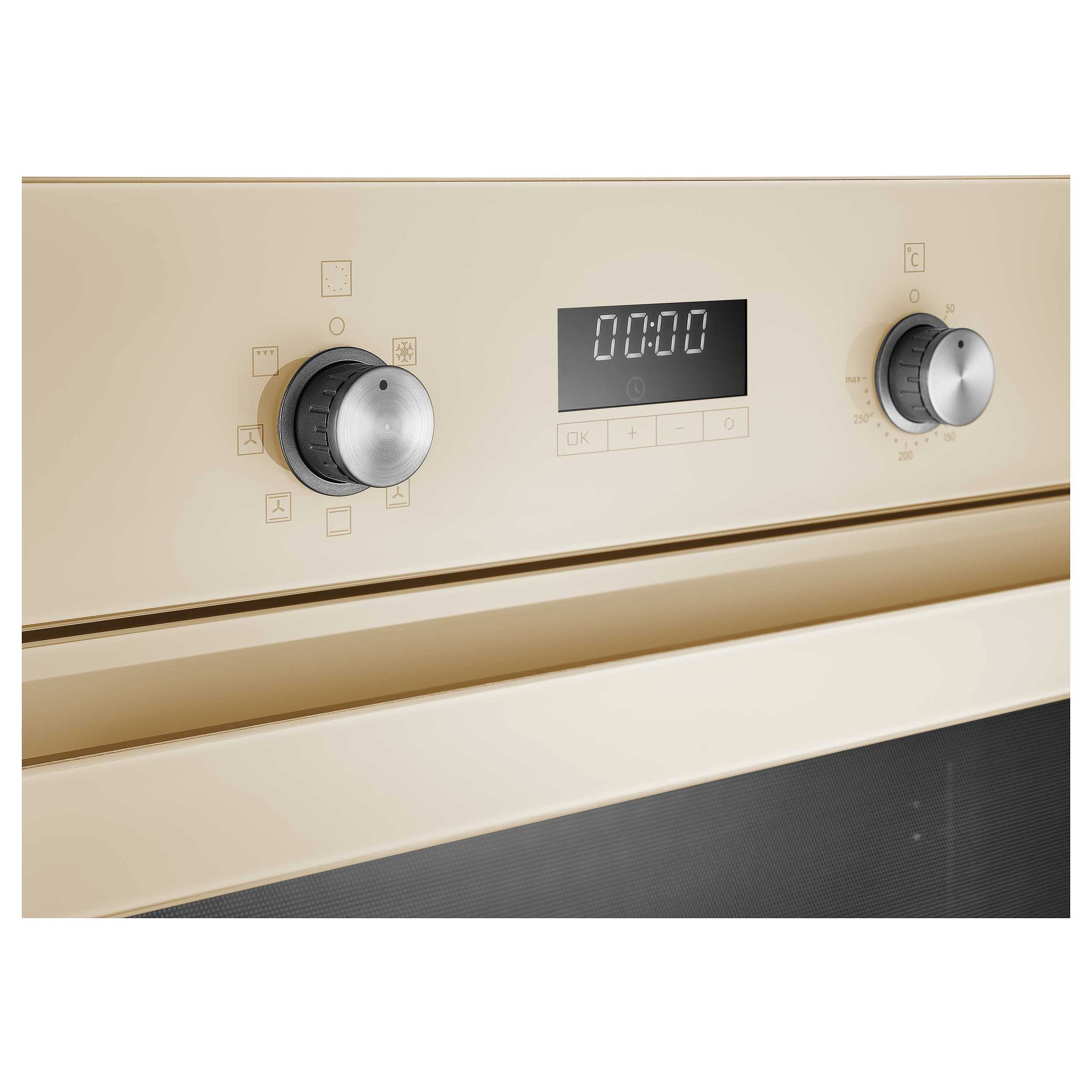 Независимый духовой шкаф OKB 771 CFGB c фронтальной поверхностью из бежевого стекла оснащена LED-дисплеем. Выбор программы осуществляется поворотом регулятора и фиксируется утапливанием в панель. Поэтому при приготовлении исключено случайное изменение настроек. Кроме того регуляторы меньше пачкаются, и за панелью управления легче ухаживать.