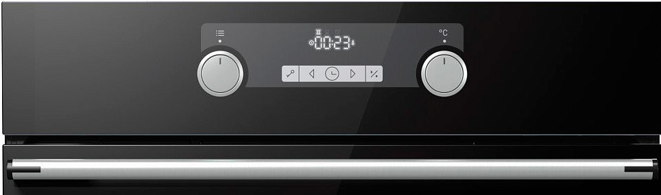 При нажатии на поворотный регулятор, он фиксируется внутри панели управления, создавая ровную поверхность, что облегчает очистку фронтальной поверхности и исключая случайный поворот переключателя. Сенсорная панель Touch Control делает настройку простой и удобной. На дисплее отображается фактическое и оставшееся до окончания приготовления время, а также настройки таймера отложенного старта.