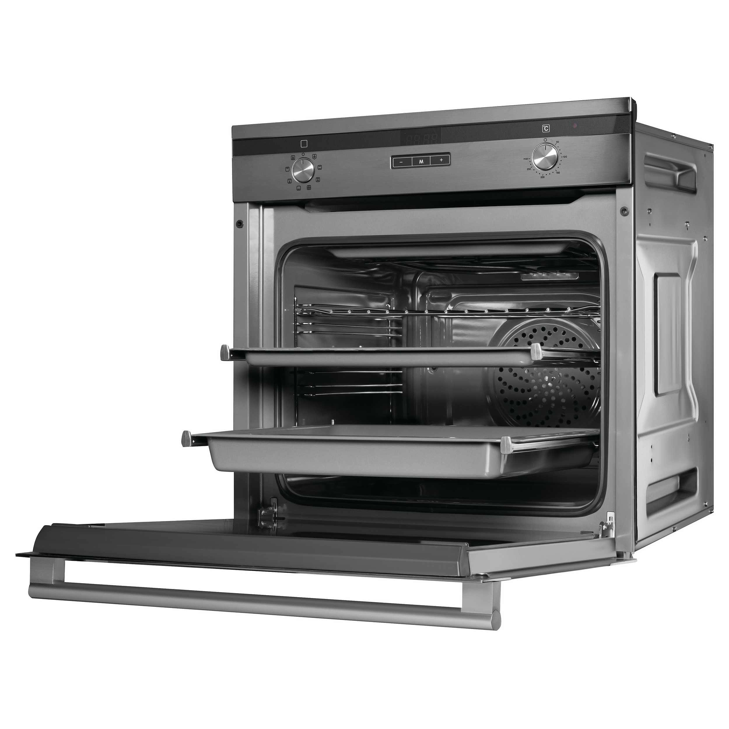 Конвекционный нагрев обеспечивает распределение горячего воздуха в рабочей камере, что гарантирует равномерное пропекание и уменьшает время приготовления. Наличие девяти видов нагрева дает возможность выбрать оптимальный режим для любого блюда. Имеются специальные программы, такие как малый и объемный гриль, конвекционное размораживание. В панель управления духовкой входят поворотные и сенсорные переключатели. Легким нажатием и прикосновением вы сможете установить нужный режим или выбрать нужную функцию. Все необходимые данные будут отображены на дисплее.