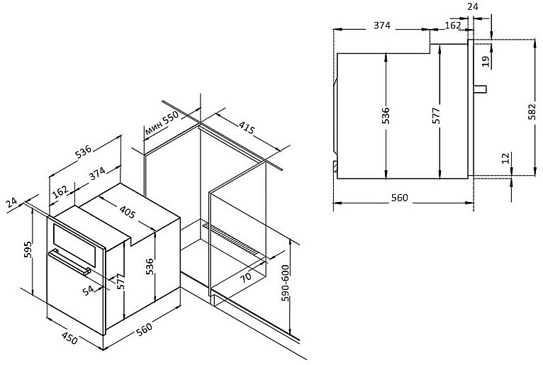Данный электрический прибор имеет стандартный объем 56 литров и предназначен для легкого встраивания в типовые кухонные модули. Основные технологии нагрева включают конвекцию для равномерного распределения тепла и турбогриль для интенсивного поджаривания. Эта электрическая духовка способна точно и стабильно поддерживать заданную температуру, что является залогом успешной выпечки и запекания.