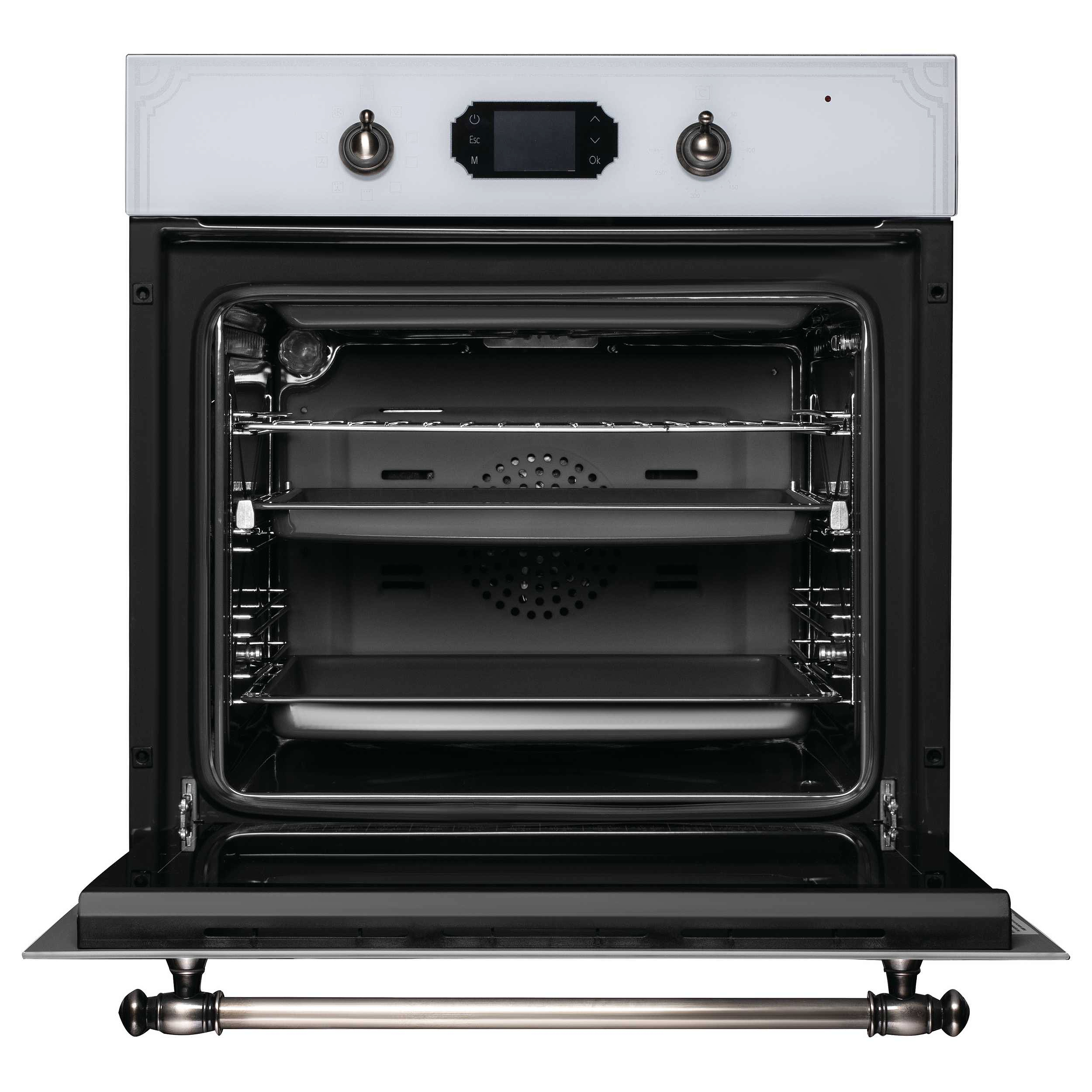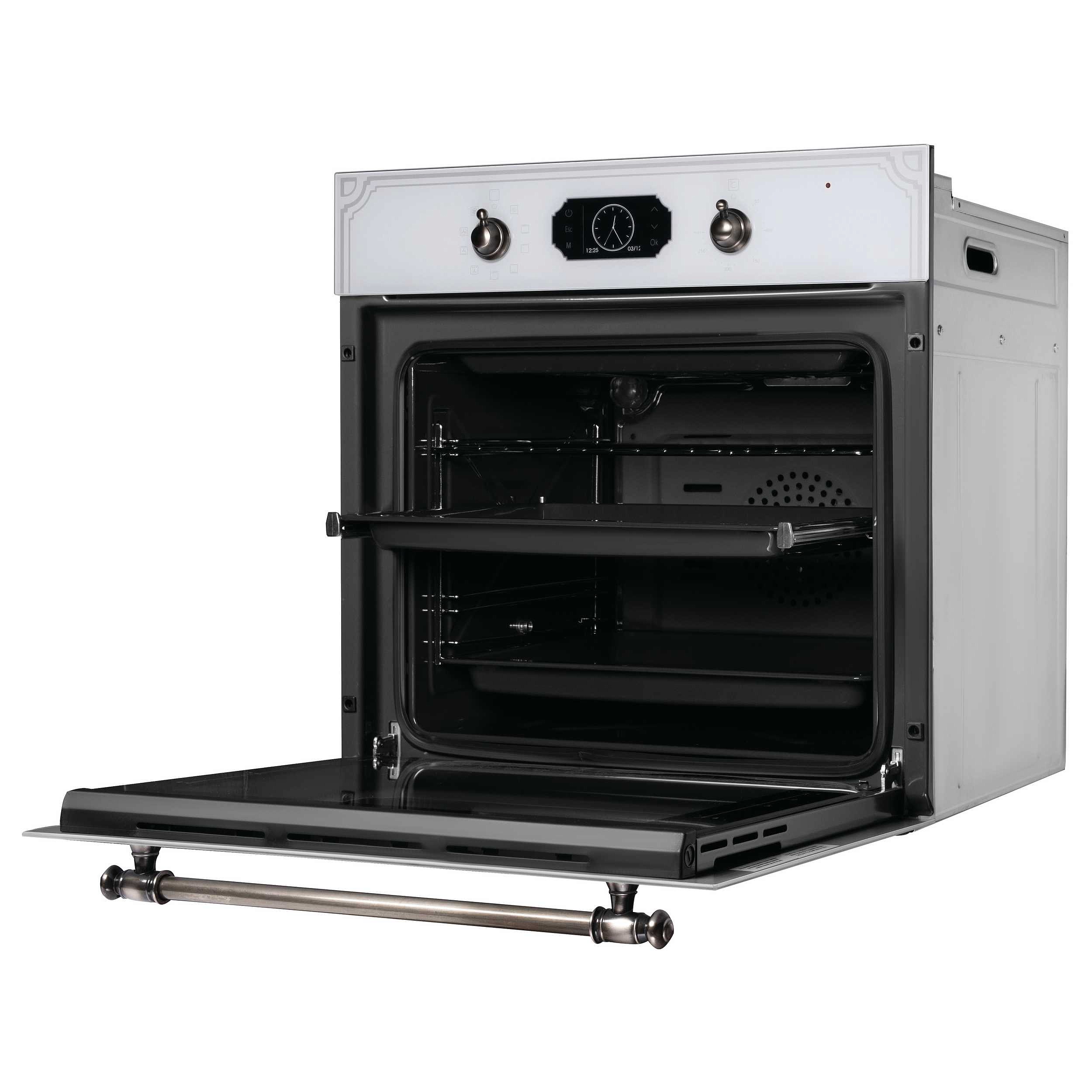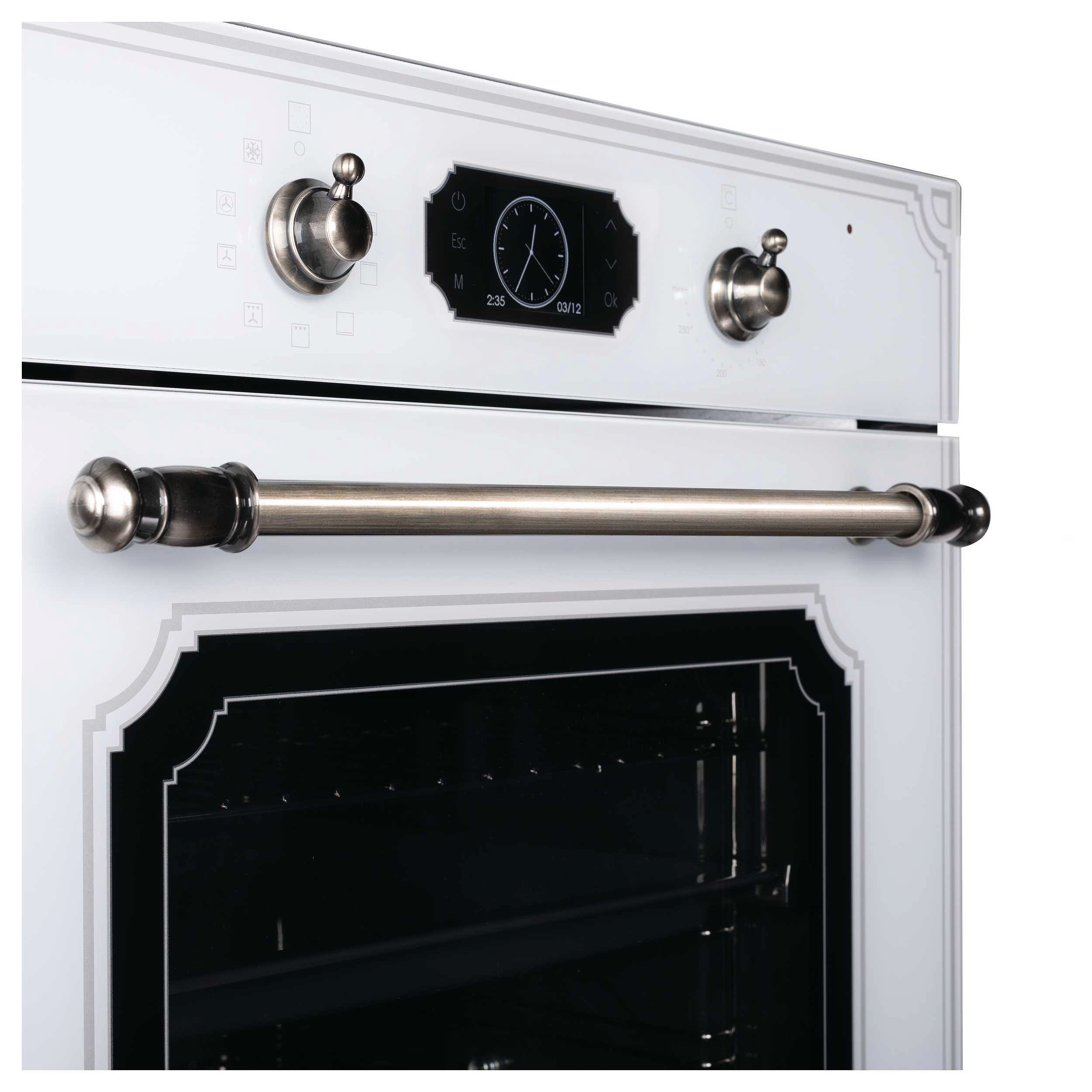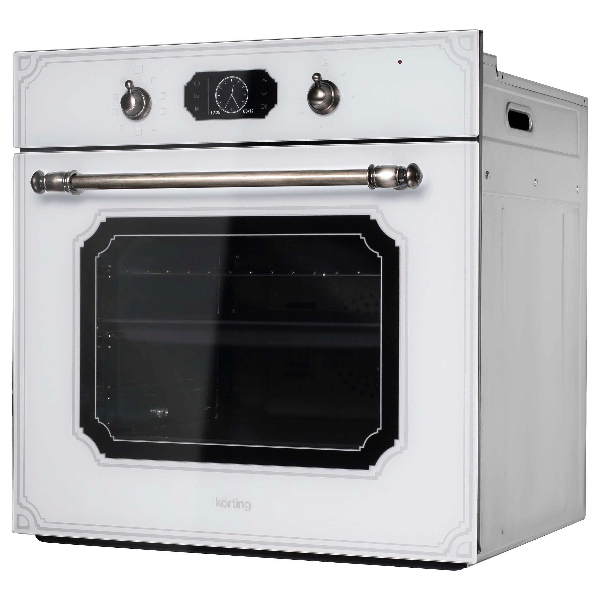 Духовой шкаф Korting OKB491CRGW — модель белого цвета из коллекции Byzantium. Поворотные регуляторы и ручка выполнены в& серебряном цвете.
