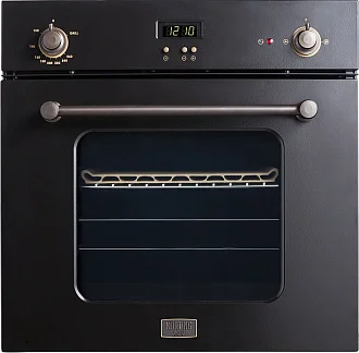 Многофункциональный шкаф OGG1052CRN выполнен в современном ретро-стиле: матовый черный цвет гармонирует с «латунными» регуляторами.