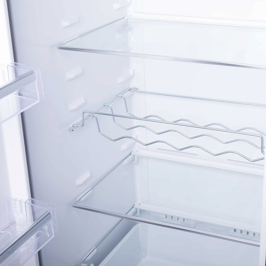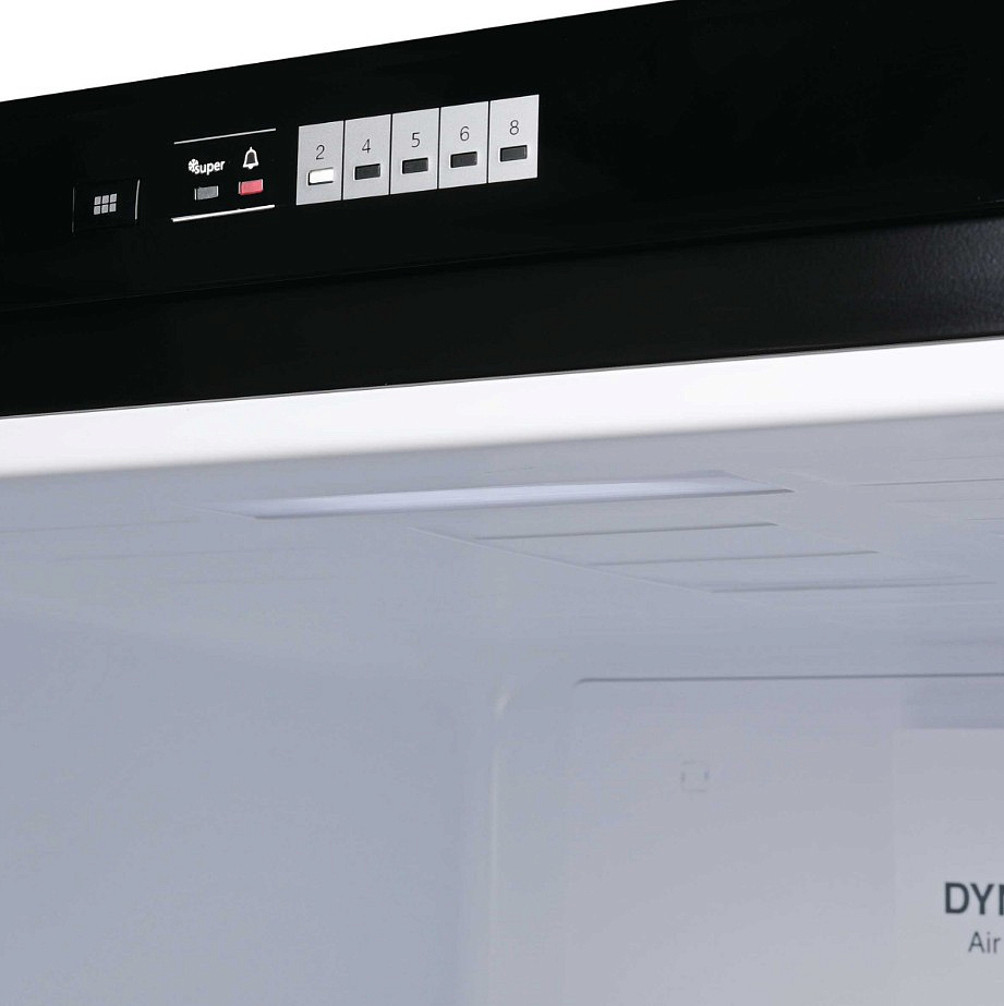 Прибор оборудован электронным управлением, при помощи которого можно быстро посмотреть температуру внутри камеры, а также активировать различные режимы. Помимо этого, светодиодная подсветка ярко освещает внутреннее пространство, отличается долговечностью и потребляет минимум электроэнергии. В морозильном отделении снижается влажность, лишняя вода не оседает на стенках и не превращается в наледь. Это происходит за счет конструктивного решения no Frost, при котором испаритель внесен в отдельный отсек, где и происходит охлаждение воздуха.