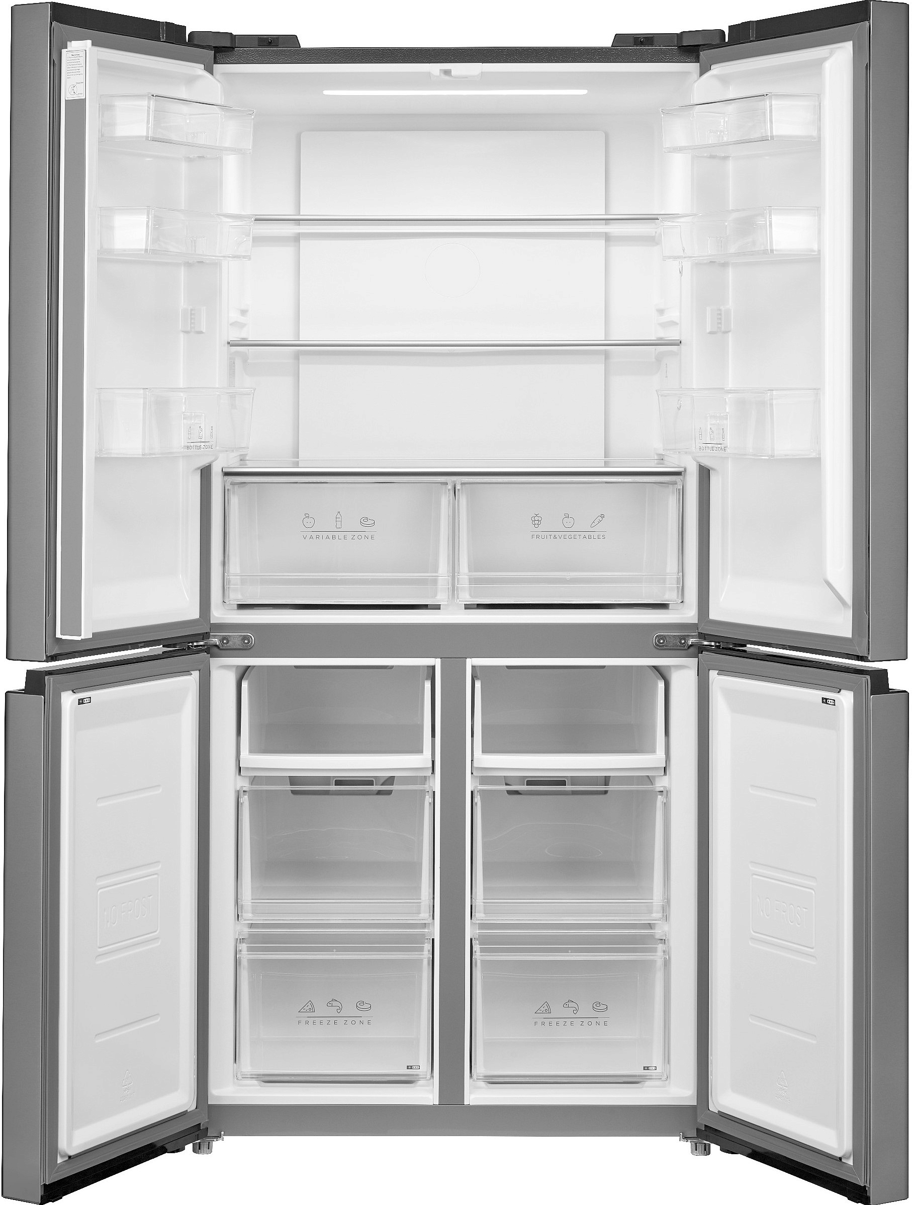 Холодильник Korting KNFM 84177 X - это современный интерьерный акцент из нержавеющей стали сочетает в себе аккуратные геометрические линии и продуманную эргономику: фронтальная поверхность выполнена из металла, дверной упор — Side by Side, а дизайн корпуса рассчитан на удобство эксплуатации при ширине 83,3 см, глубине 65,3 см и высоте 177,5 см. Четырехдверная компоновка визуально разграничивает зоны хранения, облегчая доступ к свежим продуктам и замороженным запасам; задняя стенка Cold Metal поддерживает оптимальный теплообмен и придает прибору завершённый, дорогой вид. Цвет «нержавеющая сталь» универсален для любого кухонного гарнитура, а цифровой дисплей и сенсорная панель Smart Touch дают интуитивно понятное управление без лишних ручек и переключателей.