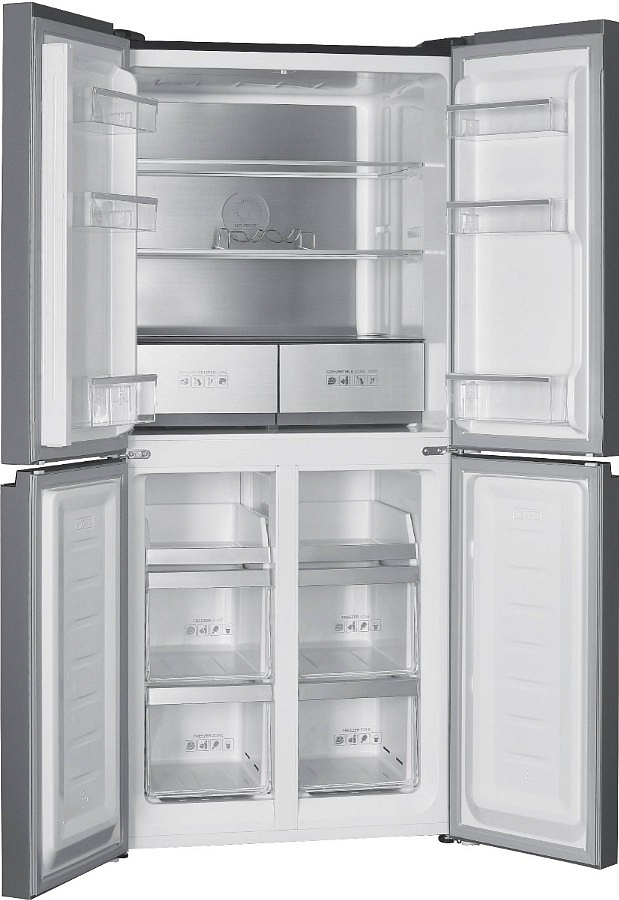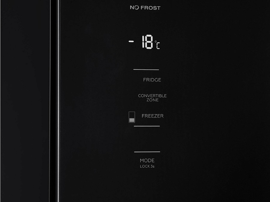Данная модель это современное решение для тех, кто ищет баланс между стилем, вместимостью и интеллектуальной начинкой. Его корпус выполнен из чёрного металла с матовой фронтальной поверхностью, что придаёт кухне лаконичный, но выразительный акцент. Габариты — 180 см в высоту и 79 см в ширину — обеспечивают достаточный объём без излишней громоздкости. Управление полностью электронное: сенсорная панель Smart Touch и цифровой дисплей с чёткими индикаторами позволяют быстро настраивать режимы. Система оповещения включает звуковой сигнал при открытой двери и световую индикацию при отклонении температуры — это помогает сохранить продукты в идеальных условиях.