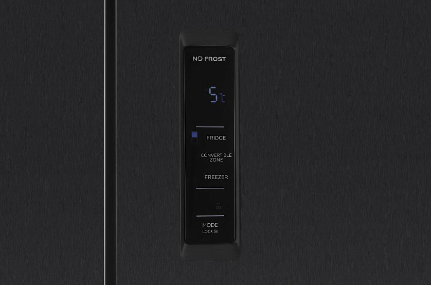 Чёрная нержавеющая сталь не только выглядит премиально, но и практична: она устойчива к царапинам, а отпечатки пальцев на ней менее заметны. Внутри — прочные стеклянные полки, выдерживающие тяжёлую посуду, и пластиковые ящики, не впитывающие запахи. Система No Frost работает в обеих камерах, полностью исключая наледь и упрощая уход. Режим Super Freeze быстро замораживает свежие продукты, сохраняя их структуру, а зона свежести с контролем влажности продлевает срок хранения овощей и зелени.