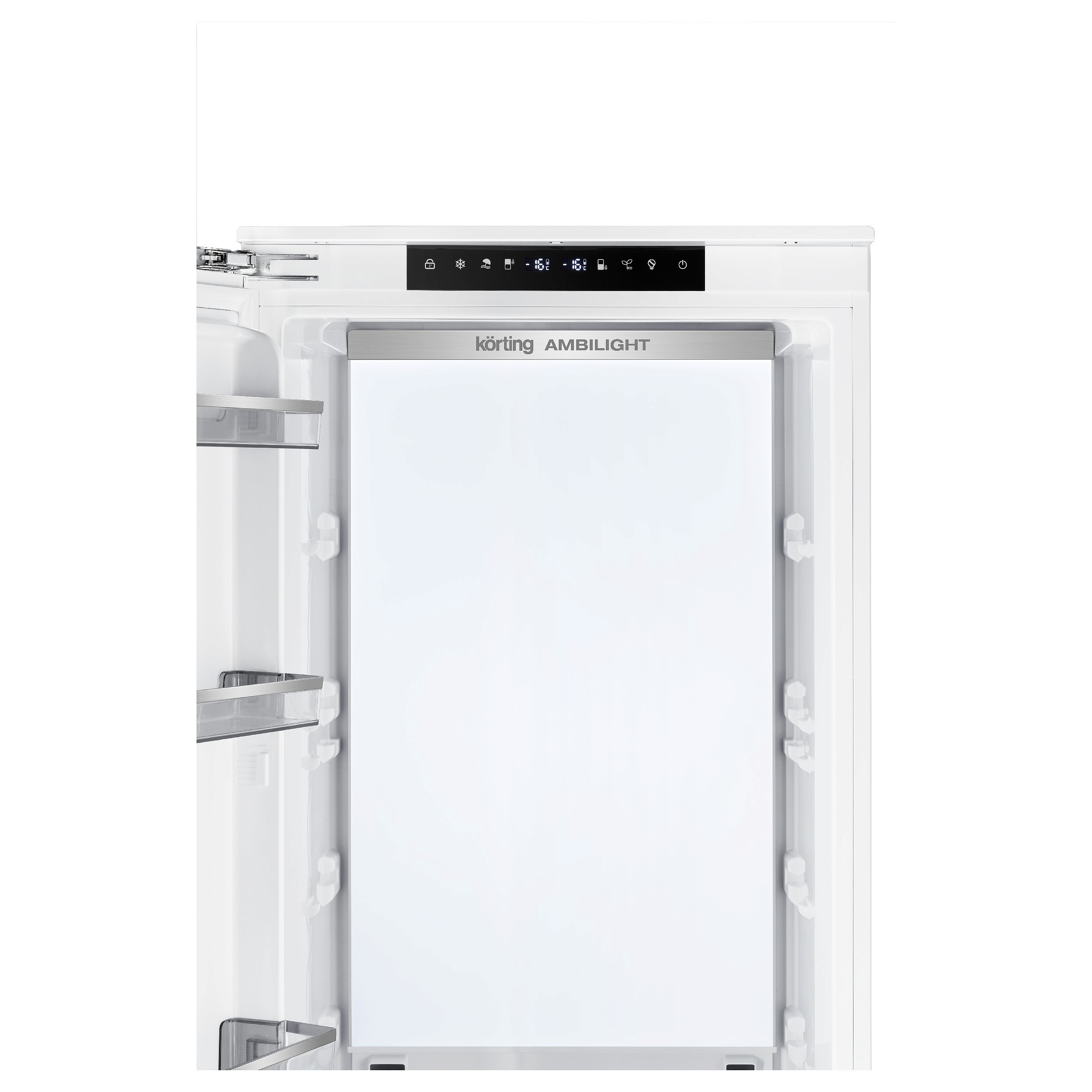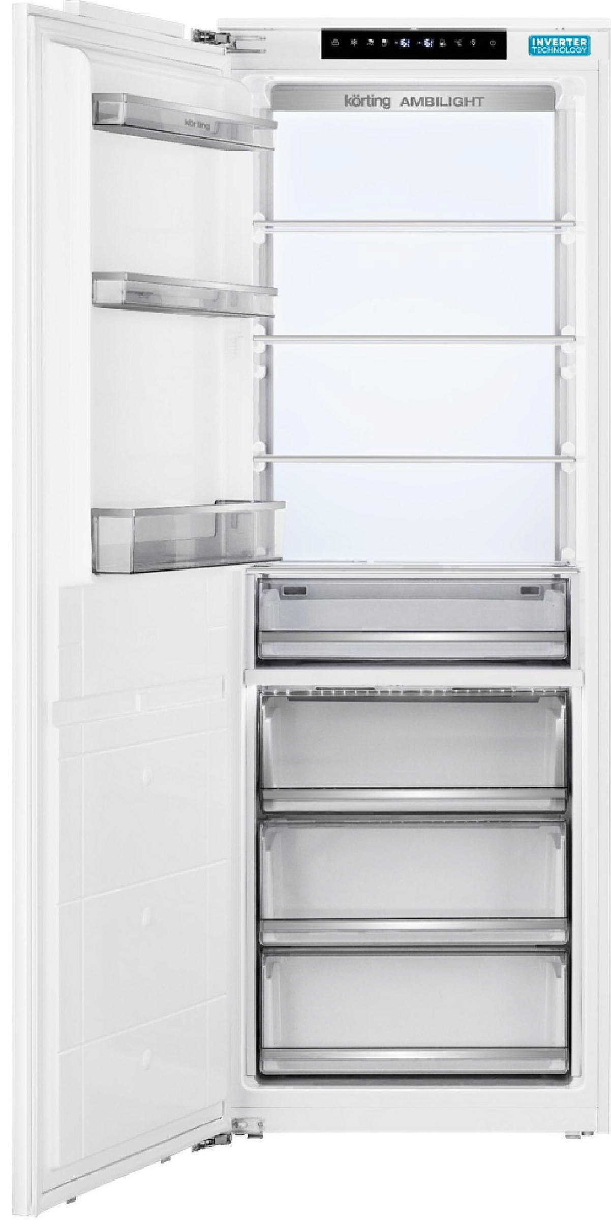 Встроенная система No Frost в морозильном отделении обеспечивает автоматическое предотвращение образования наледи, избавляя пользователя от необходимости регулярной разморозки. Это не только экономит время, но и поддерживает стабильную температуру, сохраняя свежесть продуктов. Электронное управление с цифровым дисплеем и индикаторами делает процесс настройки интуитивно понятным и позволяет контролировать все параметры работы. Яркое внутреннее освещение обеспечивает отличную видимость содержимого, даже при полной загрузке восьми вместительных ящиков. Для удобства предусмотрен специальный лоток для приготовления кубиков льда, что особенно оценят любители охлажденных напитков.