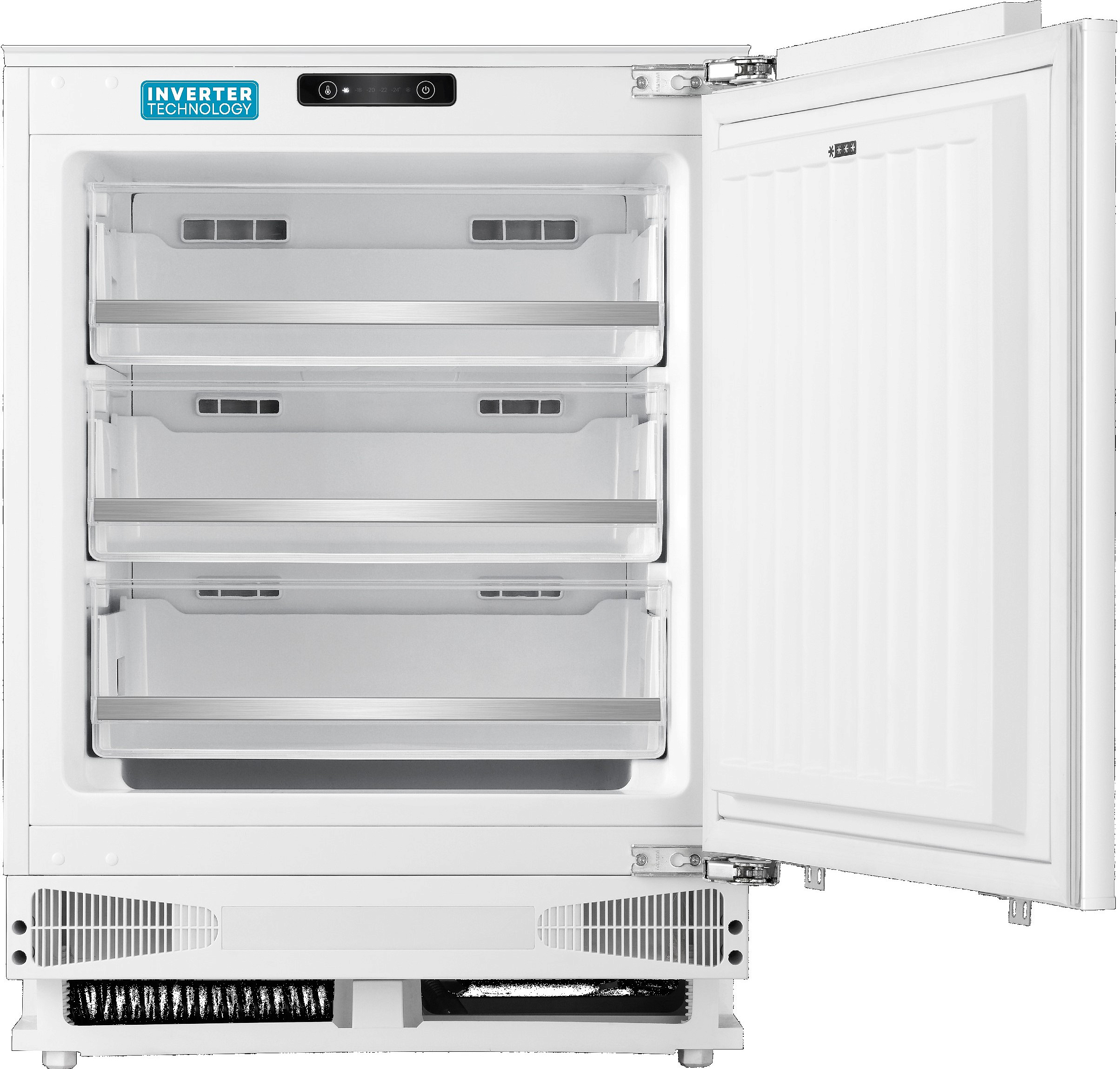 Работа устройства основана на инверторной технологии: один мощный компрессор с инверторным управлением обеспечивает стабильный режим и сниженный уровень шума — 41 дБ — при одновременном уменьшении энергопотребления. Хладагент R600A отвечает современным экологическим требованиям и повышает эффективность работы при минимальных энергозатратах. Класс энергоэффективности A+ и годовой расход электроэнергии 214 кВт·ч делают эксплуатацию экономичной, а производительность замораживания 3.8 кг/сутки подходит для семей средней величины или встраиваемых решений в небольших кухнях.