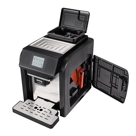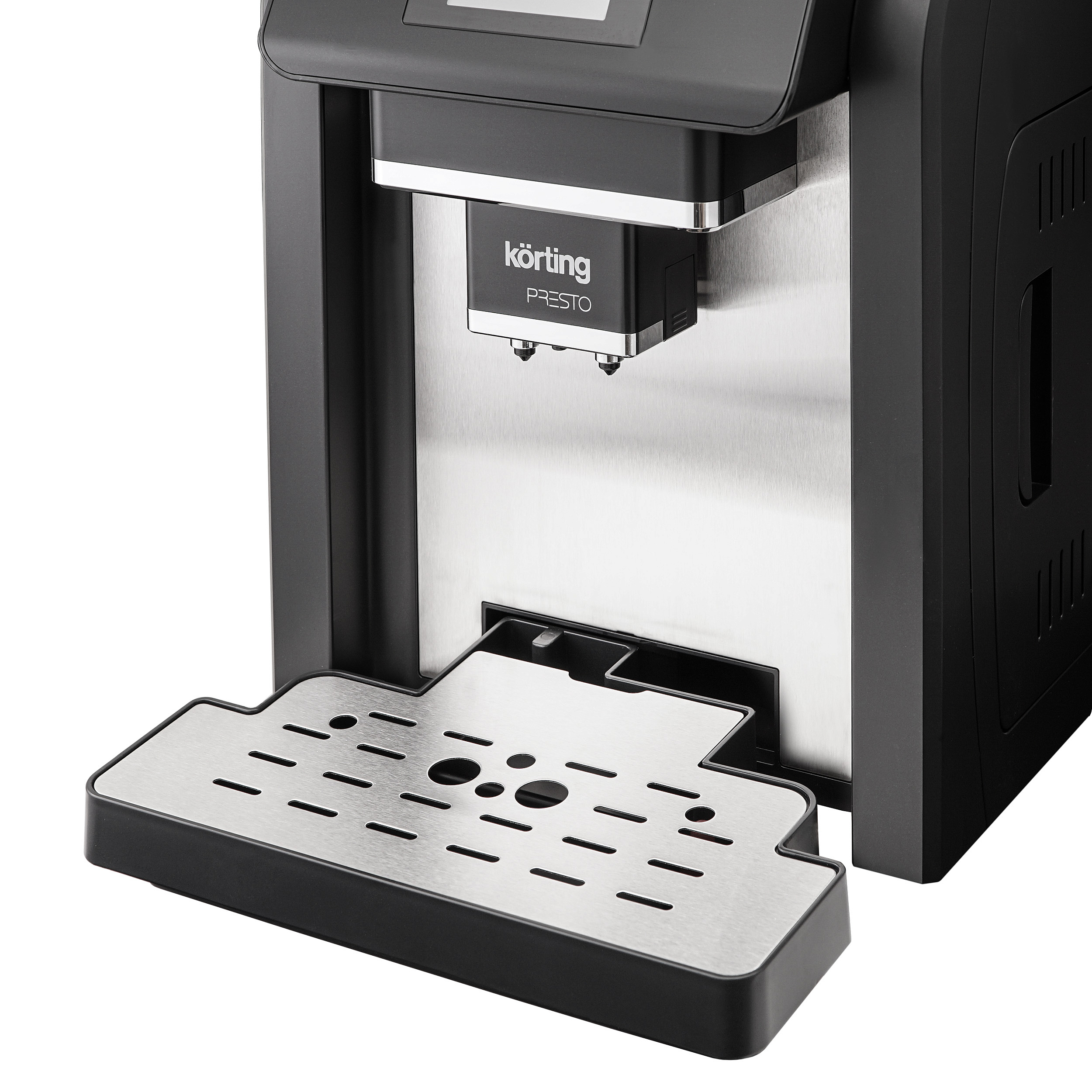 Отдельностоящая кофемашина Korting KACM 2009 Presto — это идеальное решение для истинных ценителей кофе, стремящихся к высочайшему качеству и разнообразию напитков в домашних условиях. Этот стильный и функциональный прибор выполнен в элегантном черном цвете с корпусом из нержавеющей стали, что придаёт ему современный и изысканный вид. Благодаря компактным размерам она легко впишется в интерьер любой кухни, не занимая много пространства.