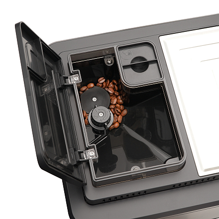 Одной из ключевых особенностей является возможность одновременного приготовления двух чашек, что особенно удобно для семейных завтраков или встреч с друзьями. Автоматический капучинатор позволяет легко приготовить капучино или латте с идеальной пенкой, а функция подогрева чашек обеспечивает оптимальную температуру напитка. Сенсорный дисплей и управление делают процесс приготовления интуитивно понятным и простым. Пользователь может сохранять собственные рецепты, регулируя объем и температуру воды, степень помола и крепость кофе. Это позволяет создавать напитки, полностью соответствующие индивидуальным предпочтениям. Кофемашина оснащена двумя раздельными бойлерами, что обеспечивает более эффективное и быстрое приготовление кофе и пара для молока. Съемный контейнер для молока объемом 400 мл облегчает уход за устройством и позволяет хранить молоко в холодильнике между использованиями. Регулировка жесткости воды помогает адаптировать работу машины к условиям водоснабжения, продлевая срок службы устройства и улучшая вкус напитков. Автоматическая очистка капучинатора упрощает уход и поддерживает гигиену прибора на высоком уровне.