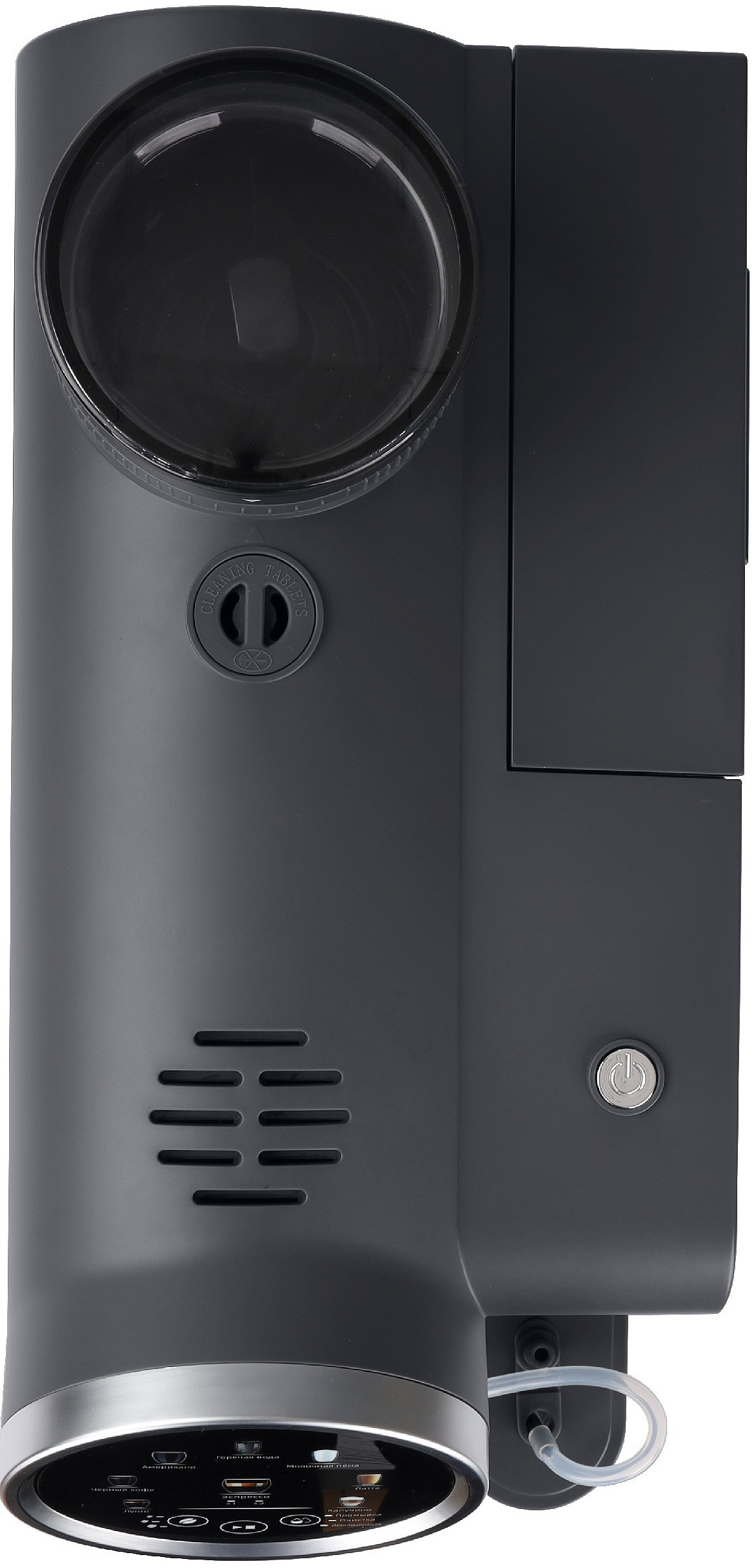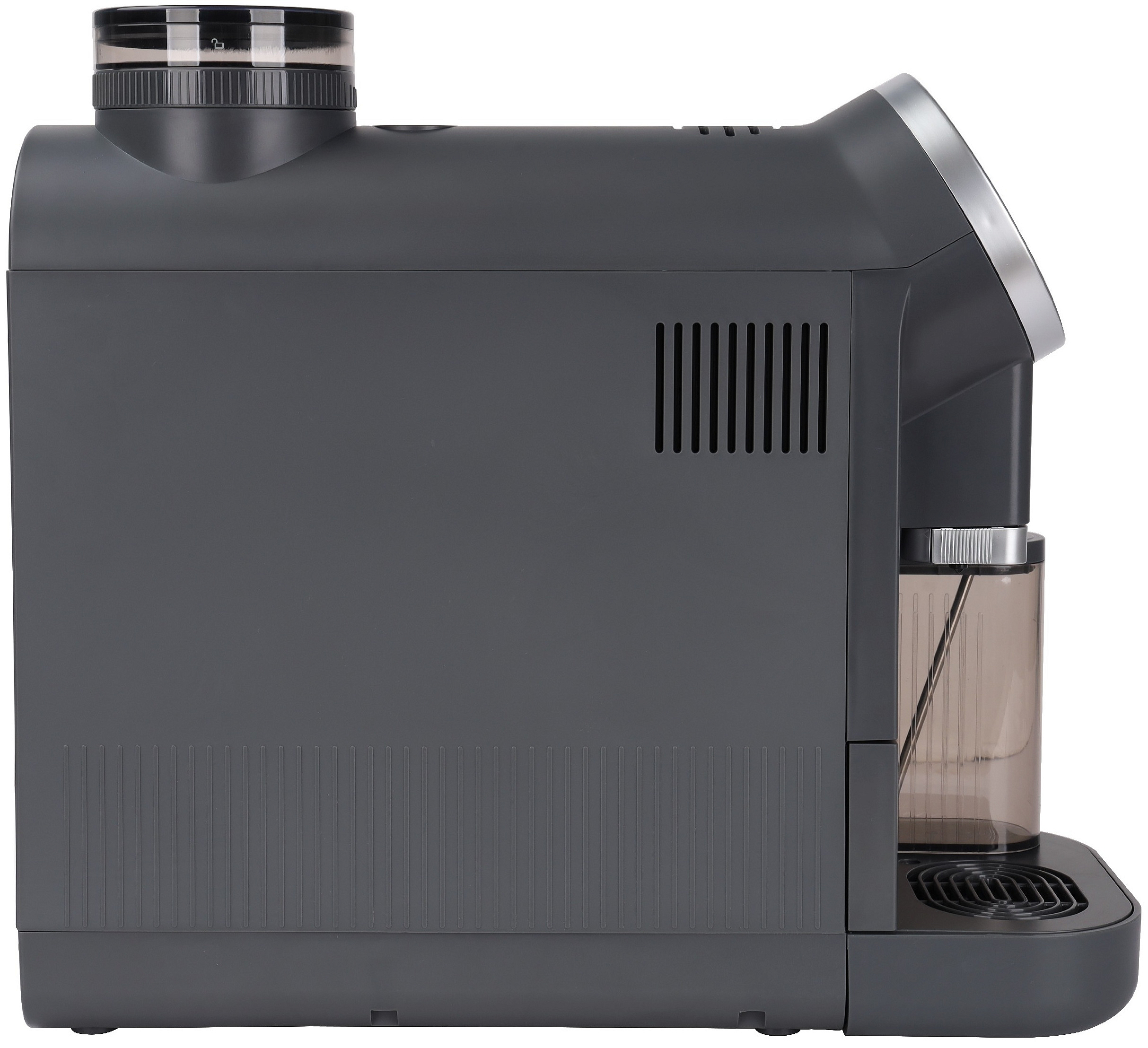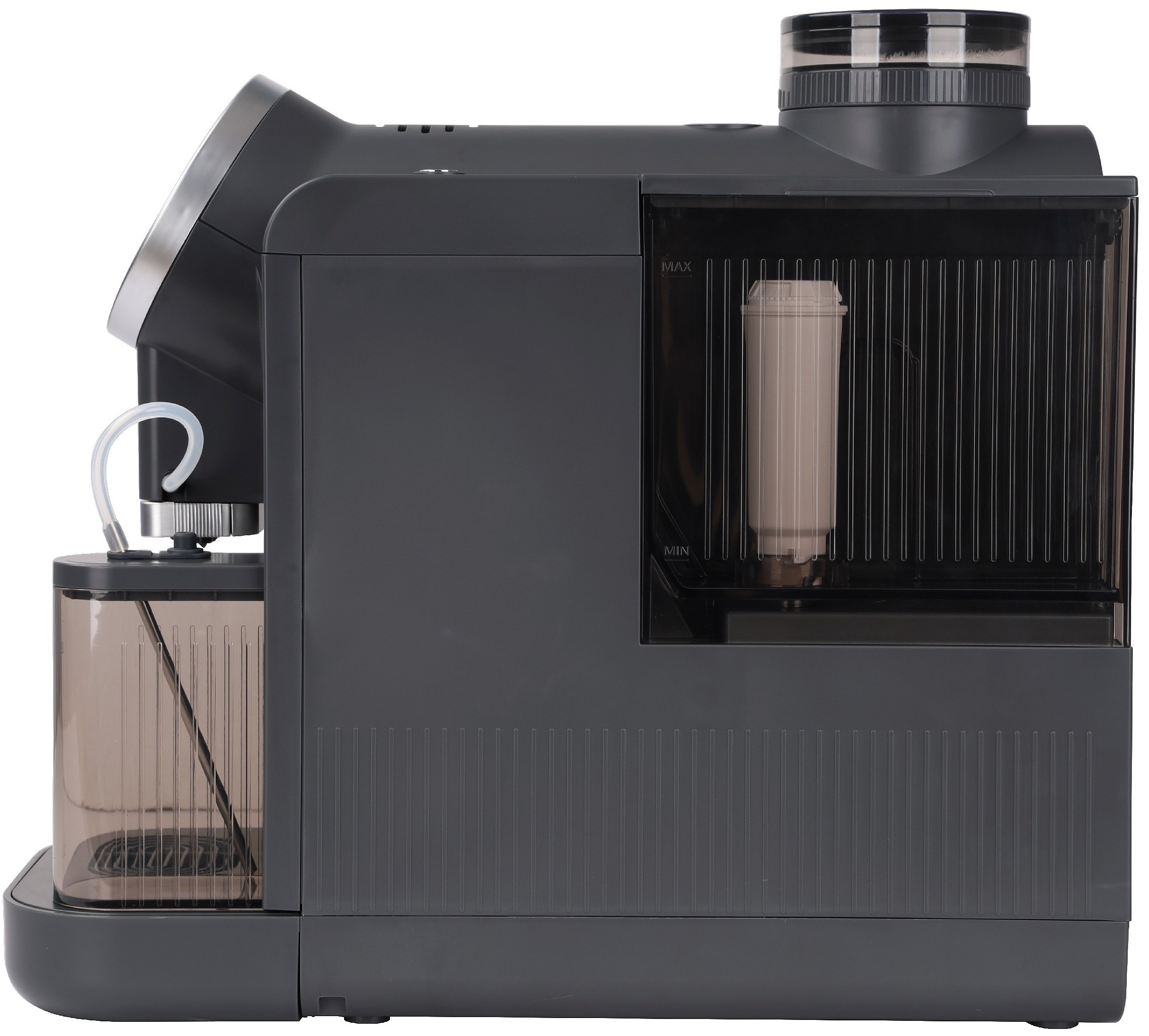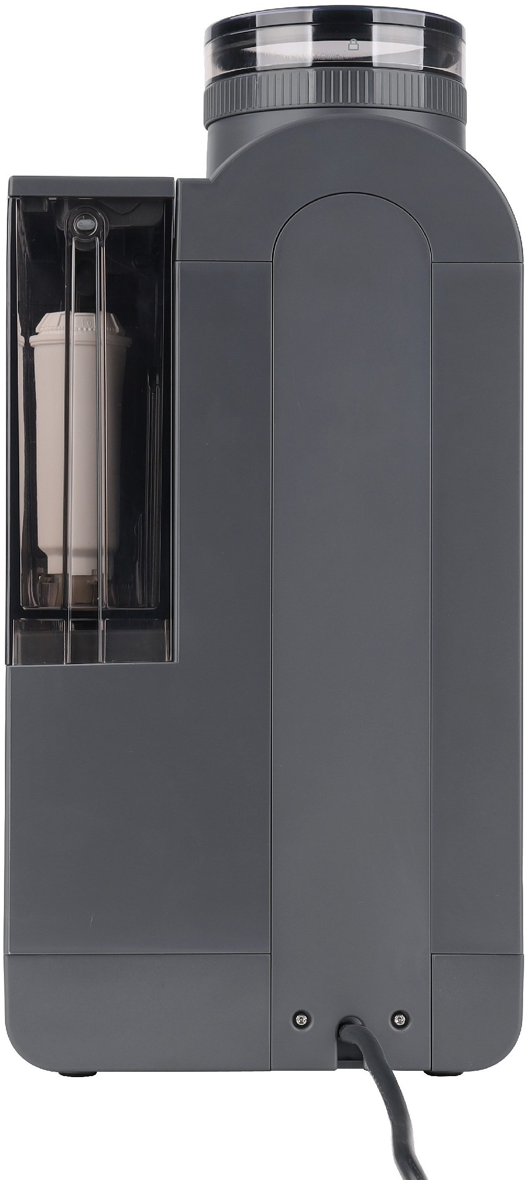Управление организовано через сенсорный дисплей, обеспечивающий интуитивный выбор программ и быструю настройку параметров. Кофемашина поддерживает оба вида сырья — молотый и зерновой — что даёт свободу в подборе вкуса и аромата. Встроенная регулировка степени помола с шестью позициями позволяет тонко настраивать экстракцию, а функция регулировки объёма воды и регулирование крепости дают контроль над насыщенностью каждой чашки. Для приготовления молочных напитков предусмотрен автоматический капучинатор с автоматической очисткой, съёмным контейнером для молока объёмом 400 мл и режимом вспененного молока, что упрощает процесс и повышает гигиеничность после использования.