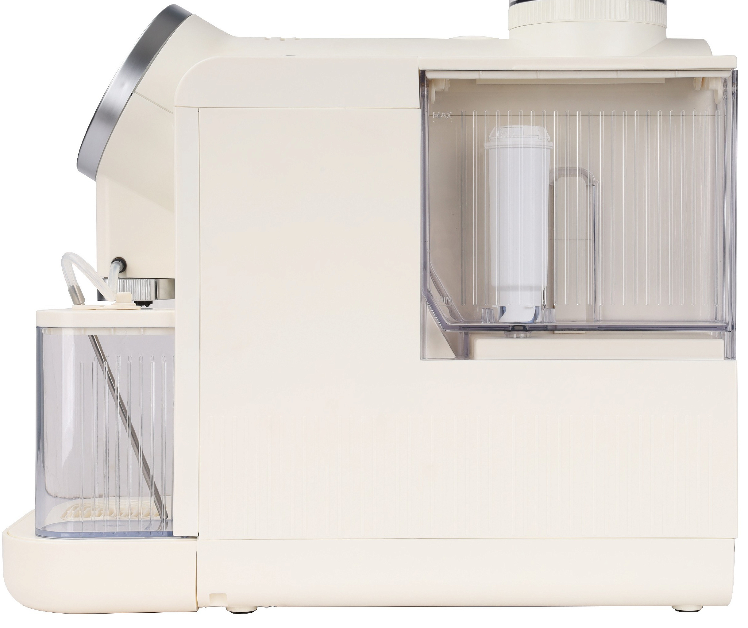 Любителям молочных напитков будет полезен автоматический капучинатор с возможностью автоматической очистки, уменьшающий необходимость ручного ухода и поддерживающий гигиену. Съёмный контейнер для молока ёмкостью 400 мл упрощает хранение в холодильнике и обеспечивает удобство при заливке и чистке. Система подачи горячей воды расширяет спектр вариантов, предлагая чайные и классические чёрные чашки по требованию.