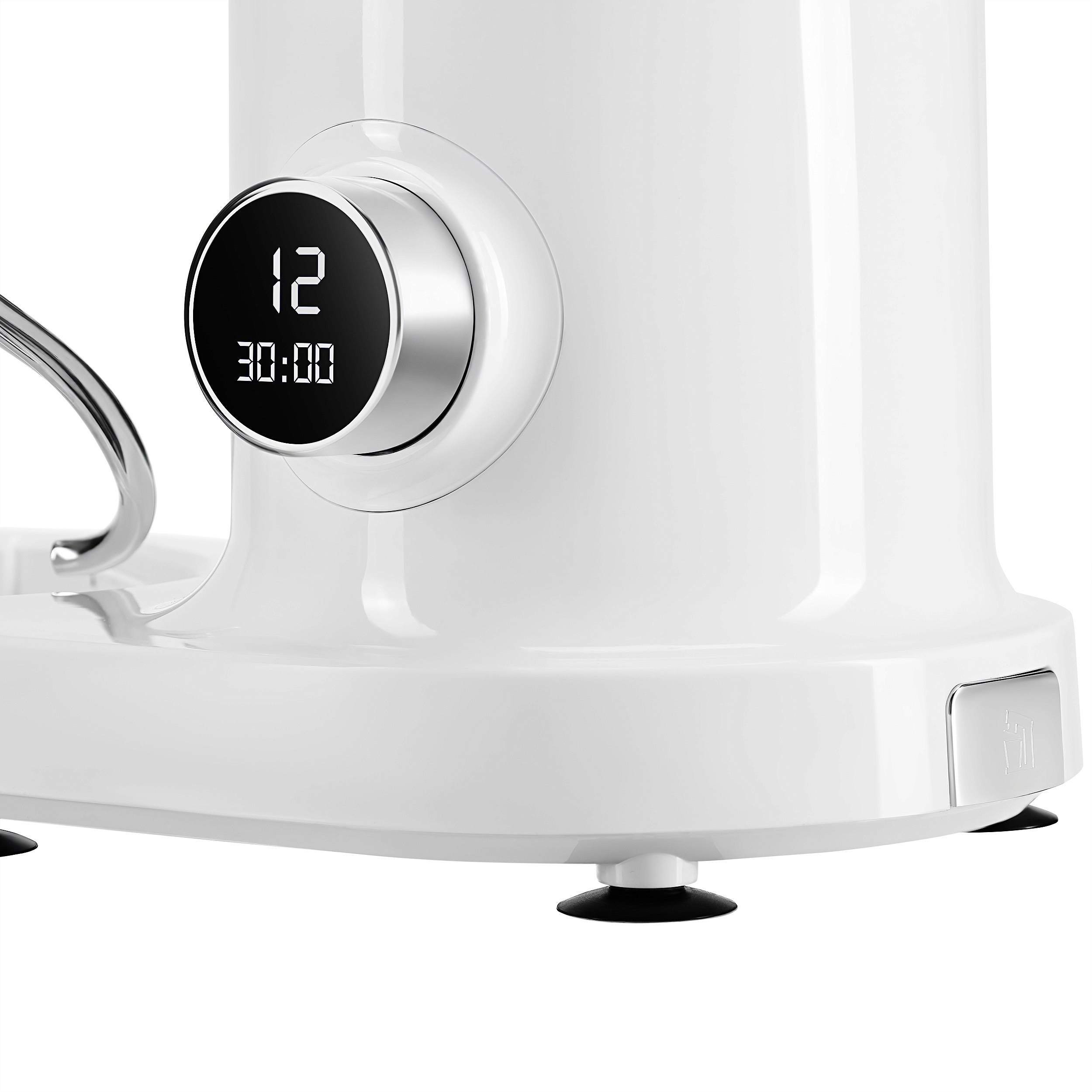 Управление машиной осуществляется при помощи механических кнопок, что делает ее использование максимально удобным и простым. Цифровой LED дисплей позволяет легко контролировать процесс приготовления и выбирать необходимые настройки. Планетарное вращение насадок обеспечивает равномерное перемешивание ингредиентов, а таймер позволяет точно соблюдать время приготовления блюд.