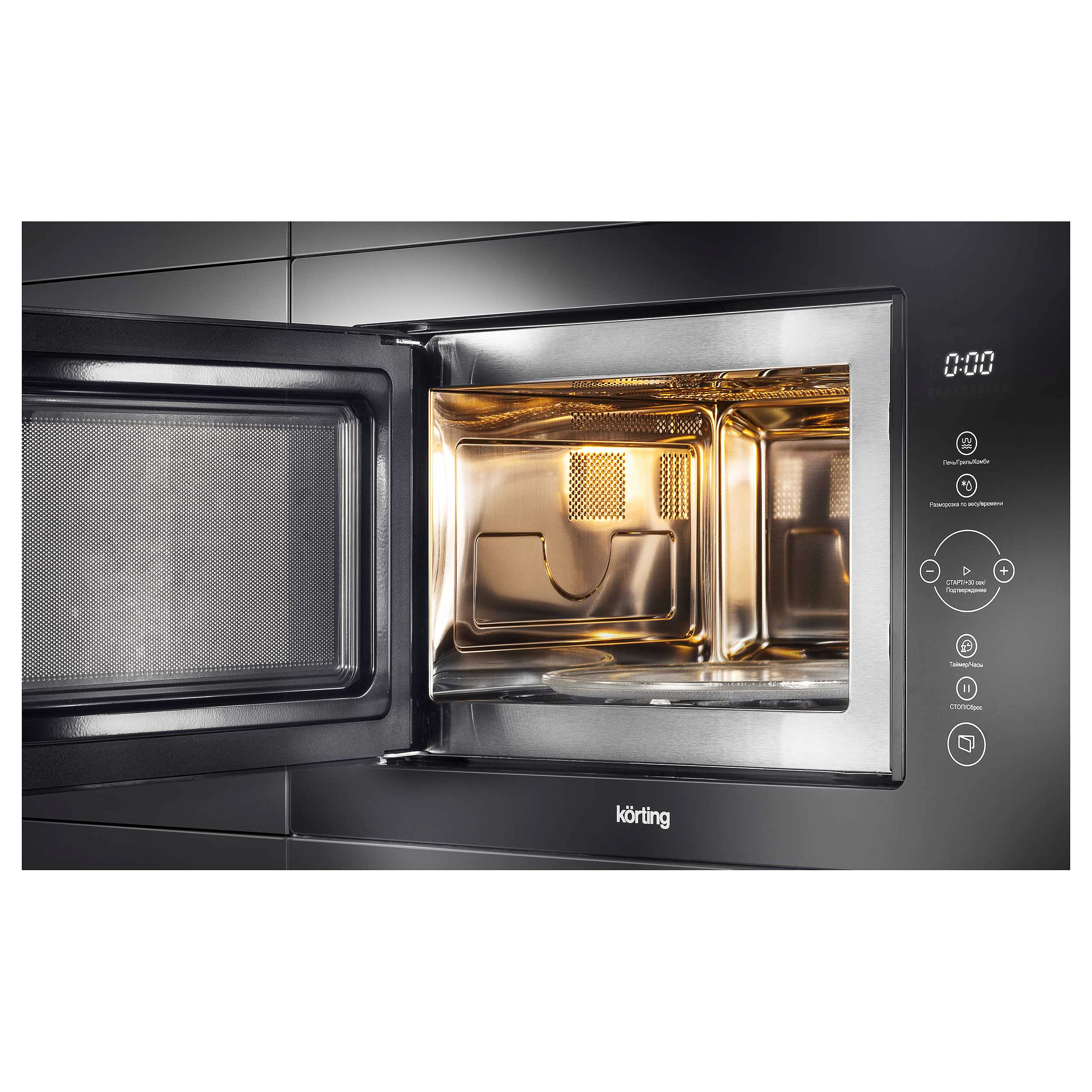 Встраиваемая микроволновая печь Korting KMI 825 TGN оснащена восемью автоматическими режимами. Гриль распределяет инфракрасное тепло и воздействует на продукт снаружи. Многоступенчатое приготовление позволяет установить несколько режимов в определенной последовательности. Благодаря этому нет необходимости контролировать процесс приготовления — о переходе между этапами сообщает звуковой сигнал.