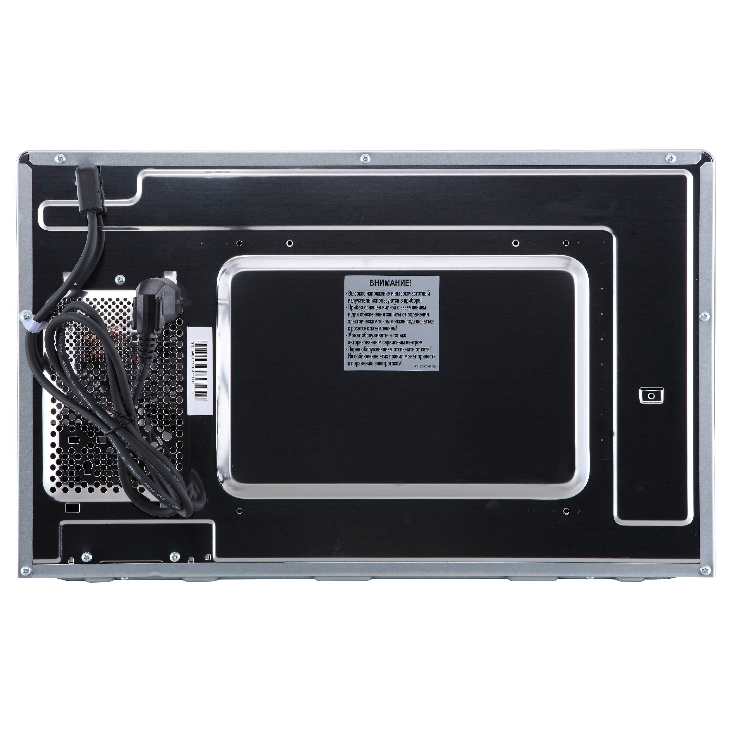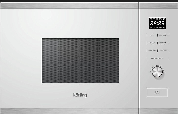 Дизайн выдержан в духе современной функциональности: чёткие линии корпуса, минималистичный дисплей Cold White и гибридная панель управления — поворотный регулятор в сочетании с сенсорными зонами — делают работу с техникой интуитивной. При этом не приходится жертвовать возможностями ради простоты: кварцевый гриль мощностью 1000 Вт дополняет микроволновое излучение (800 Вт), обеспечивая не только быстрый разогрев, но и привлекательную текстуру блюд. Благодаря комбинированным и многоступенчатым программам можно сначала разморозить продукт, а затем сразу запечь его — без перекладывания и лишней посуды.