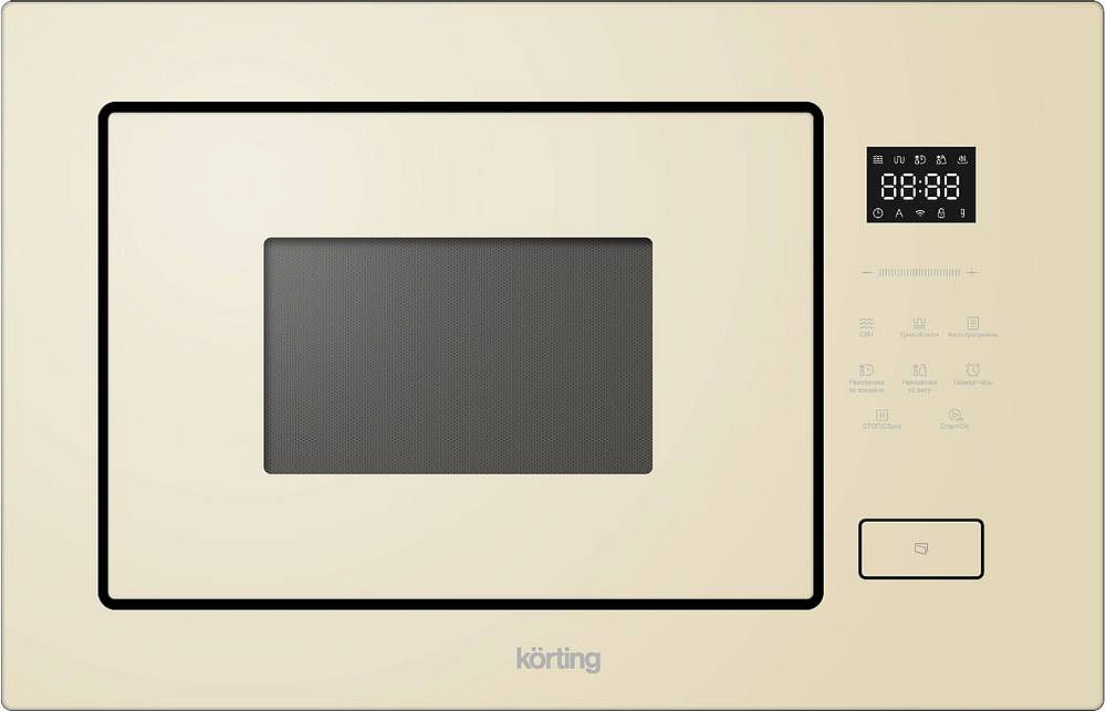 Встраиваемая микроволновая печь Korting KMI 827 GB — современная модель, выполненная в цвете бежевое стекло. Прибор имеет внутреннюю камеру без поворотного стола, которая выгодно отличается увеличенной площадью использования, а также удобством в уходе. Сенсорный дисплей «Cold White» удобен для выбора нужного режима. Управление прибором можно заблокировать, в данном случае дети не смогут воспользоваться микроволновой печью. Опция «Быстрый старт» запустит микроволновку на максимальной мощности на 30 секунд, что позволит разогреть небольшое количество еды. Режим автоматической разморозки сам определит необходимое время для оттаивания — просто положите продукт, выберите данный режим, выставите вес продукта и дальше устройство само сделает остальную работу.
