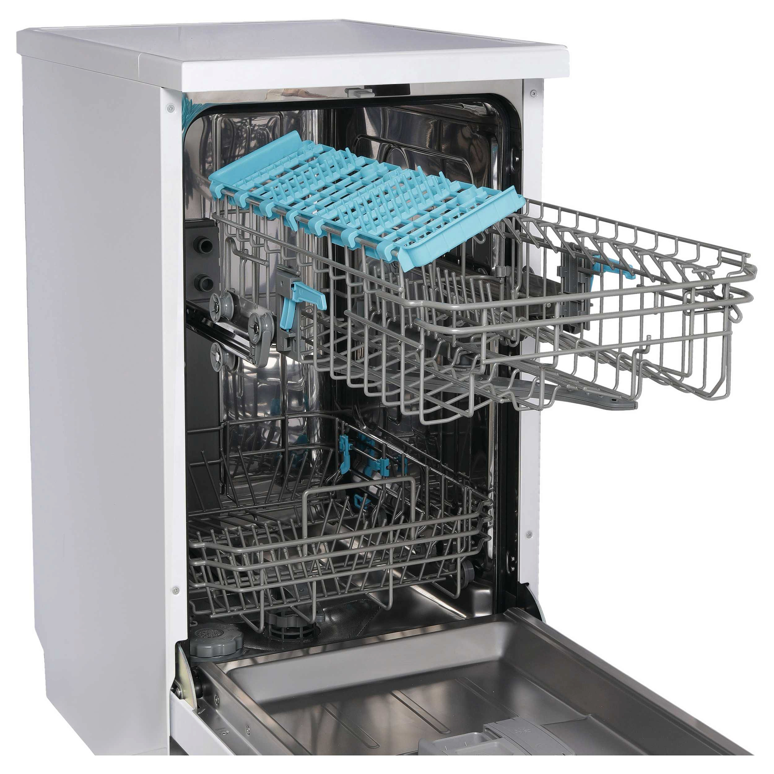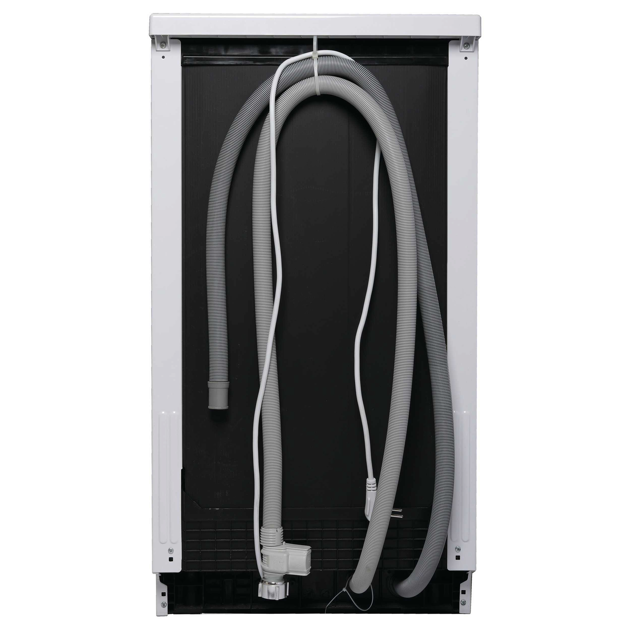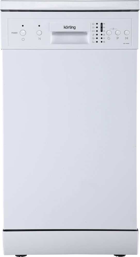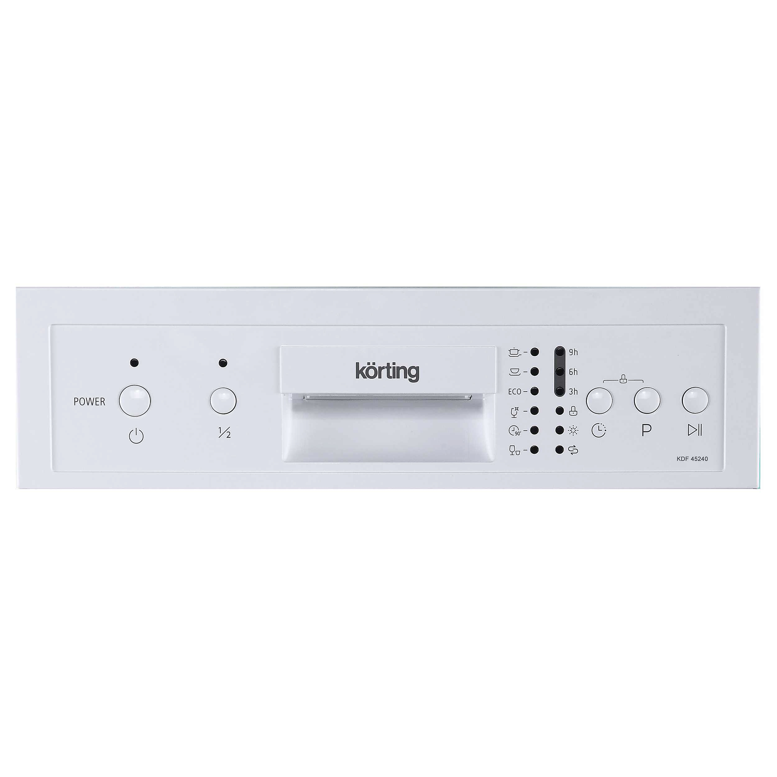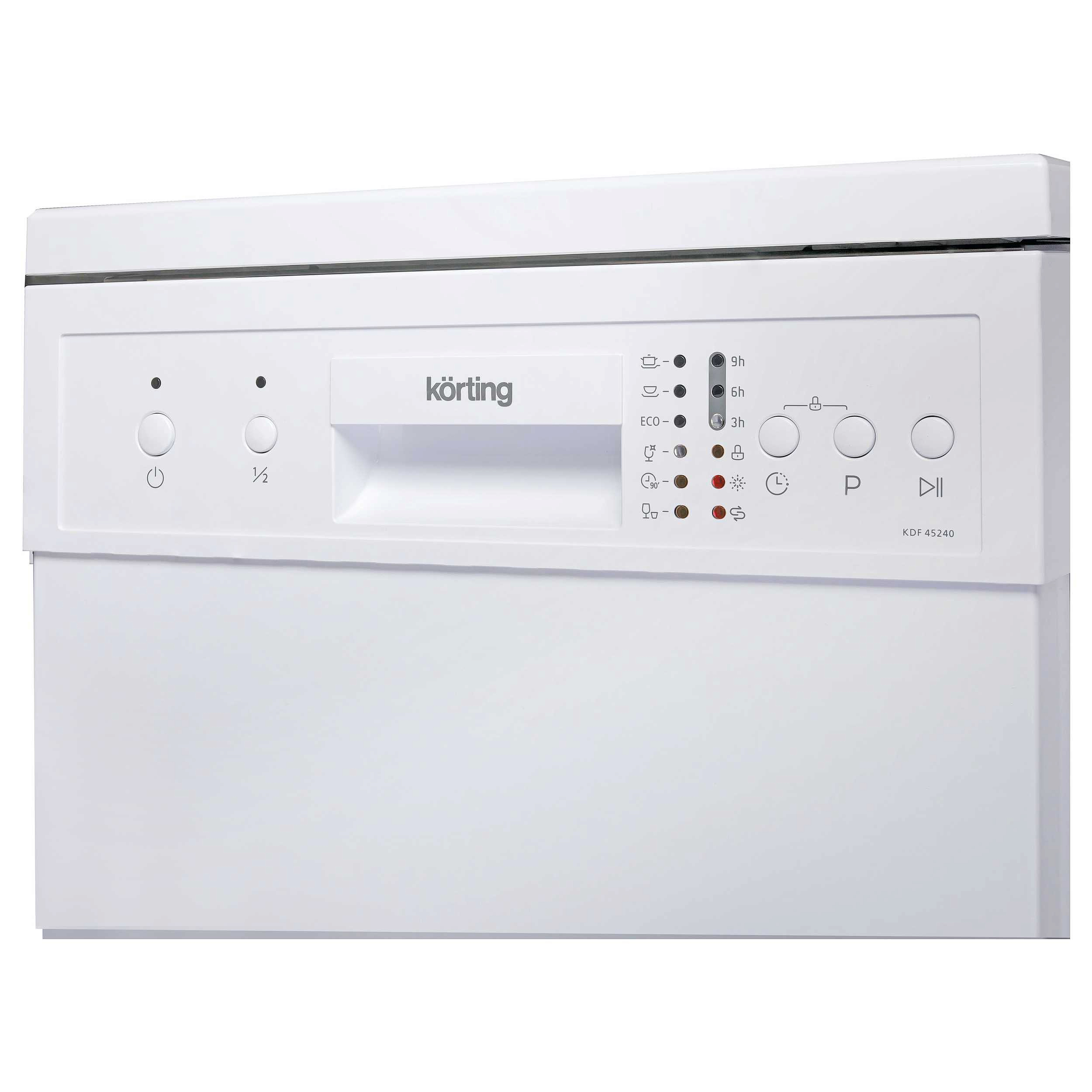 Посудомоечная машина Korting KDF 45240 представлена в компактном белом корпусе с габаритами: высота — 84,5 см, ширина — 44,8 см, глубина — 60 см. За счет это машина с легкостью сможет разместиться даже на небольшой кухне. Данное устройство вмещает 10 комплектов посуды, а расходует за один цикл всего 9 л. Такое устройство идеально подойдет для семьи из 4 человек.