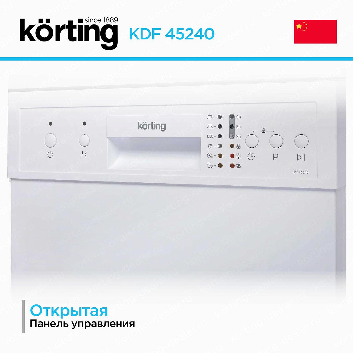Благодаря механизму полной защиты от протечек AquaStop Вы можете не бояться, что посудомоечная машина Кортинг KDF 45240 затопит Вашу квартиру или жилье соседей снизу. Система самодиагностики оперативно выявляет информацию о возможных неисправностях.