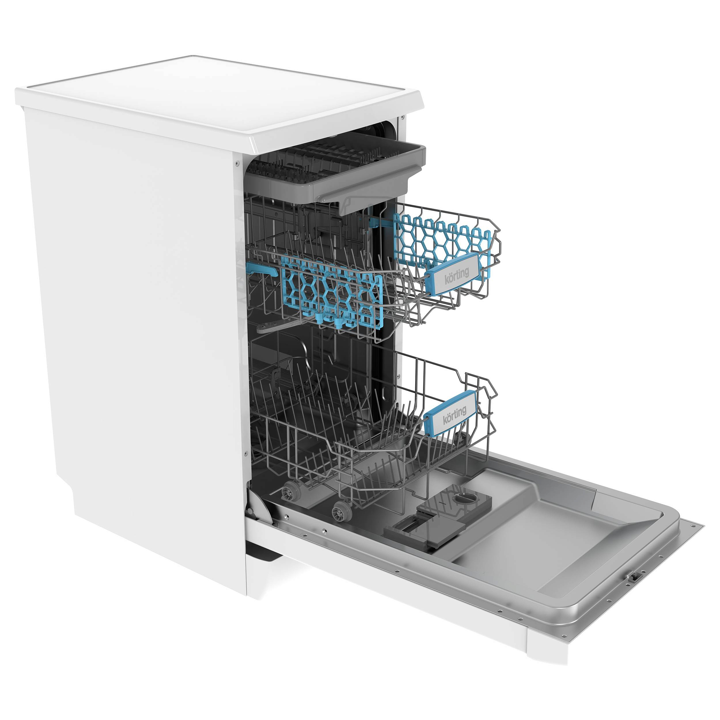 Посудомоечная машина — это компактное, но функциональное решение для небольших кухонь, студий или офисных зон. Её белый корпус с лаконичной передней панелью выглядит аккуратно и легко вписывается в любой интерьер. Ширина всего 44,8 см позволяет разместить технику даже в узкой нише, не жертвуя полезным пространством. При этом внутренняя камера выполнена из нержавеющей стали — материал устойчив к коррозии, не впитывает запахи и упрощает уход.
