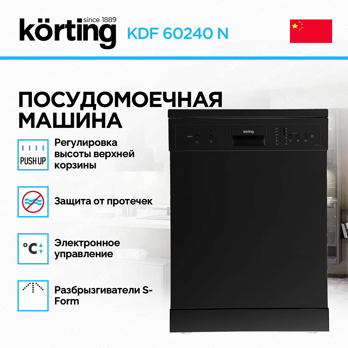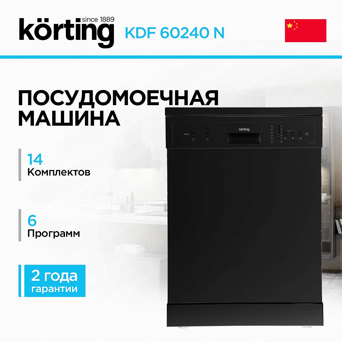 Посудомоечная машина Korting KDF 60240 N представлена в черном цвете. Модель вмещает в себя до 14 комплектов посуды, поэтому она отлично подойдет для большой семьи.