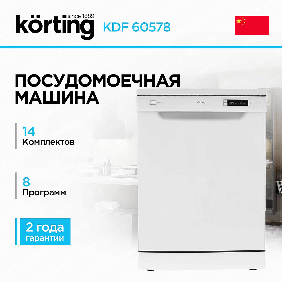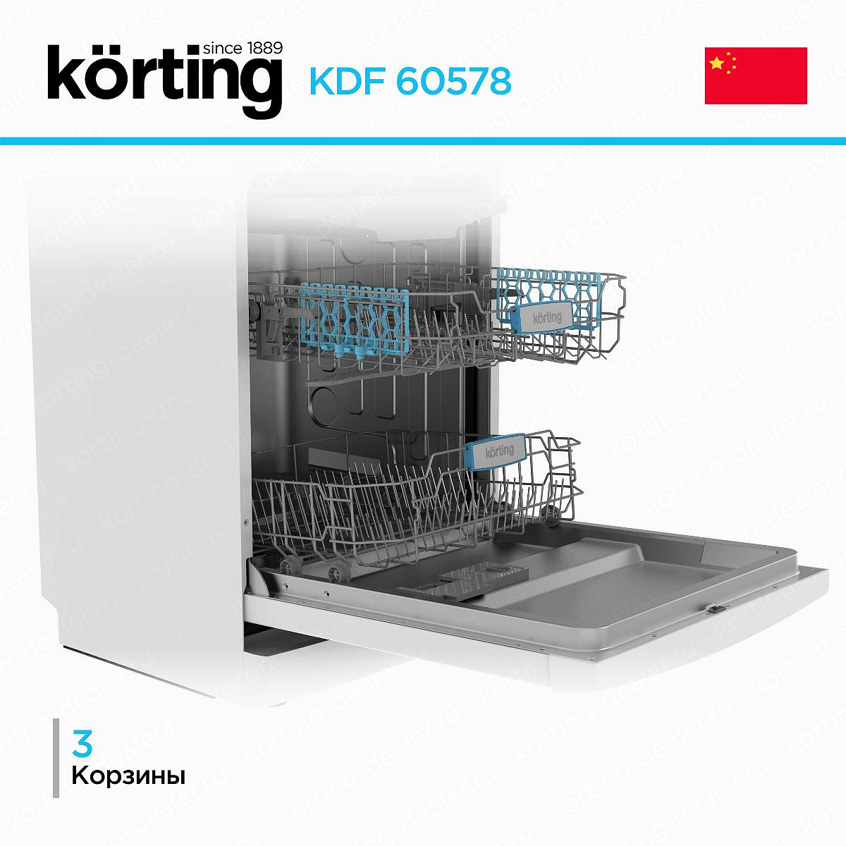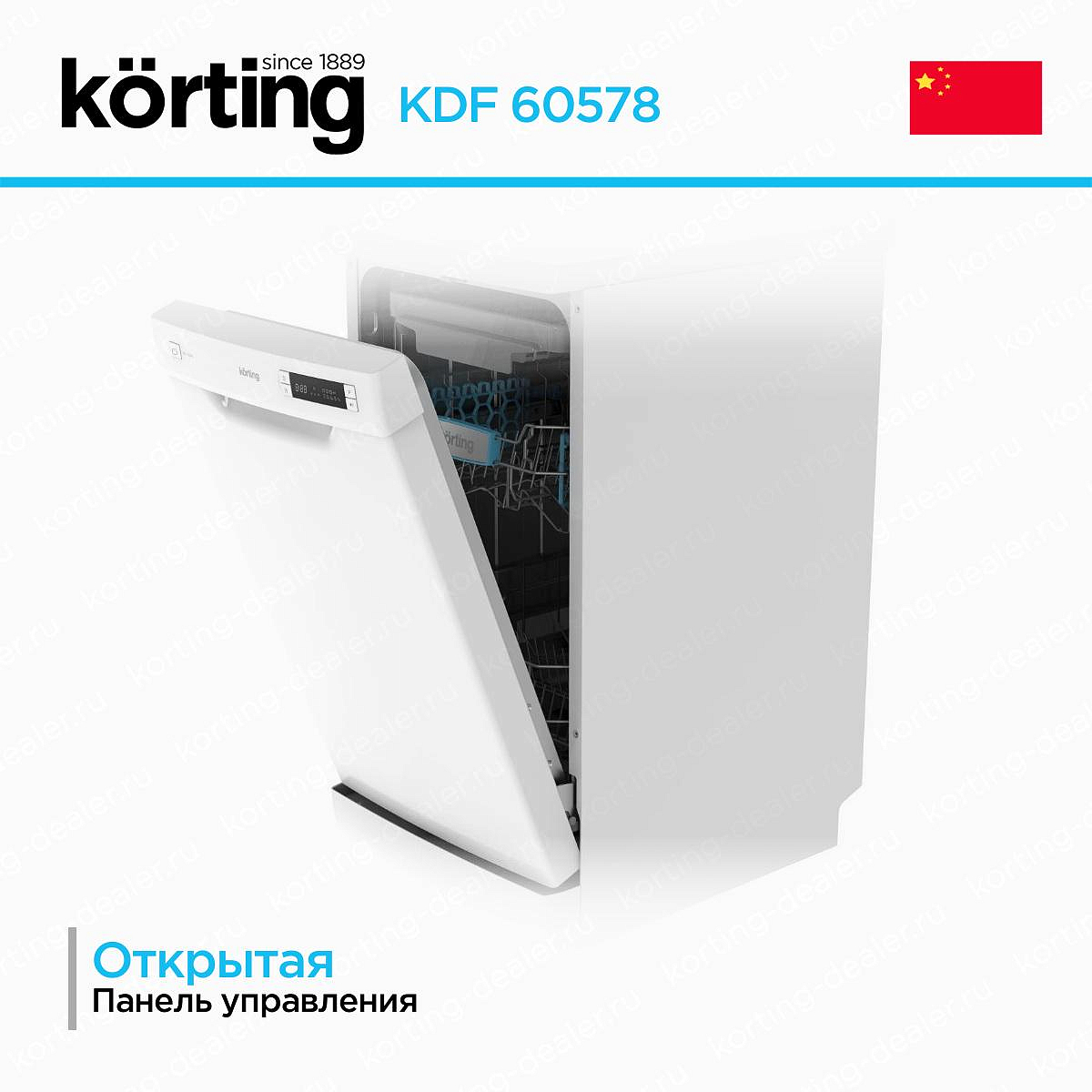 Внешний вид Korting KDF 60578 выполнен в классическом, аккуратном стиле. Корпус цвета белый придает прибору светлый, чистый вид, который органично вписывается в большинство кухонных интерьеров — от скандинавского минимализма до современной классики. Белый цвет визуально расширяет пространство, что особенно ценно для небольших кухонь.
