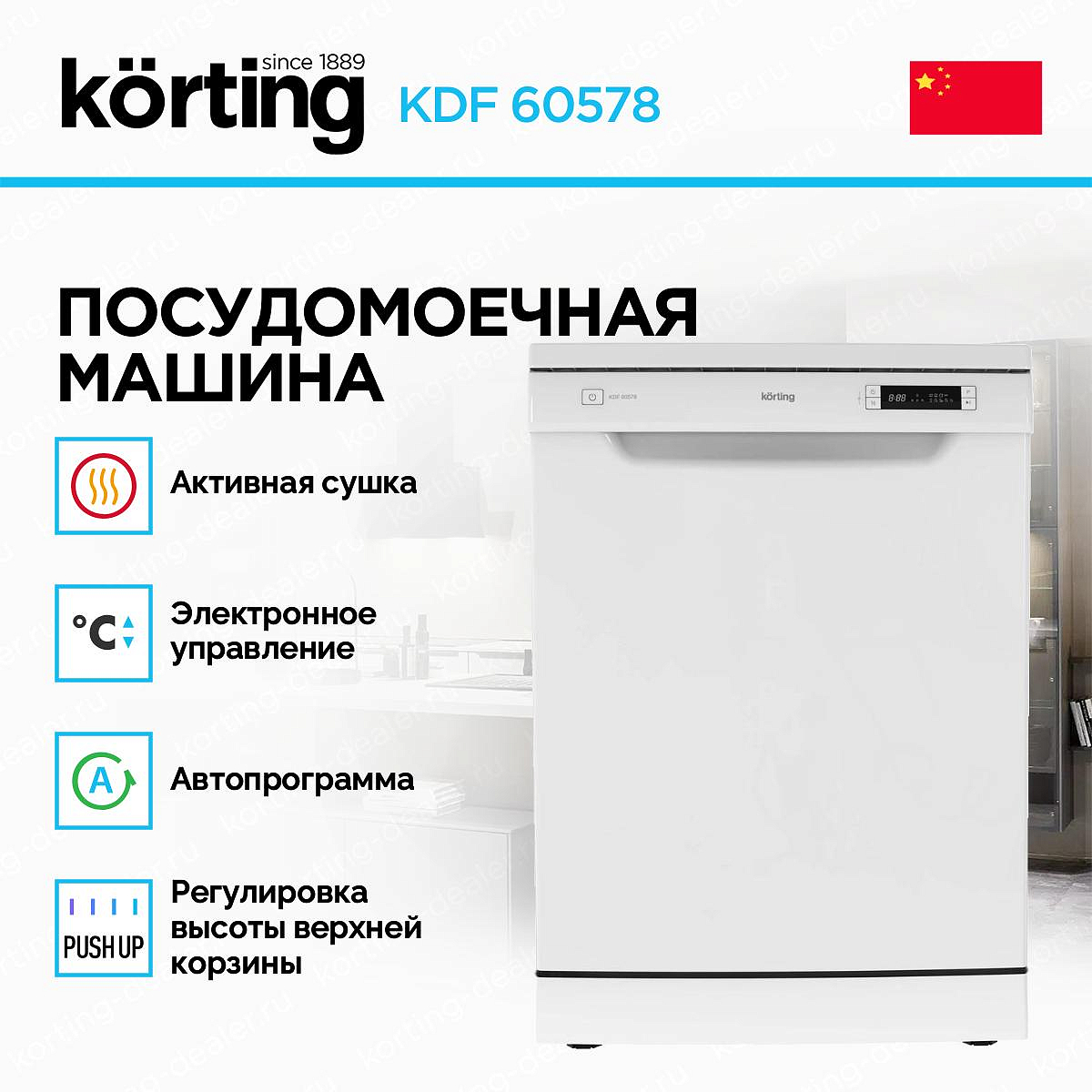 Посудомоечная машина Korting KDF 60578 — современная полноразмерная отдельностоящая модель, выполненная в белом цвете. Цифровой дисплей и электронное управление позволяют без труда настроить необходимый вам режим работы. Прибор обладает высоким классом энергоэффективности, что способствует снижению затрат на электроэнергию.