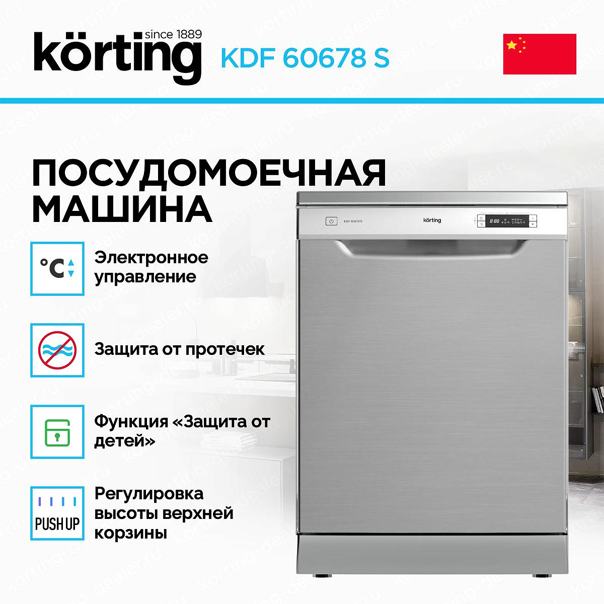 Korting KDF 60678 S оснащена набором функций, которые делают процесс мытья посуды максимально комфортным, эффективным и экономичным. Центральное место занимает класс энергопотребления A+++ — самый высокий в европейской классификации. В сочетании с расходом воды всего 11 литров за цикл это обеспечивает минимальные эксплуатационные расходы и снижение нагрузки на окружающую среду.