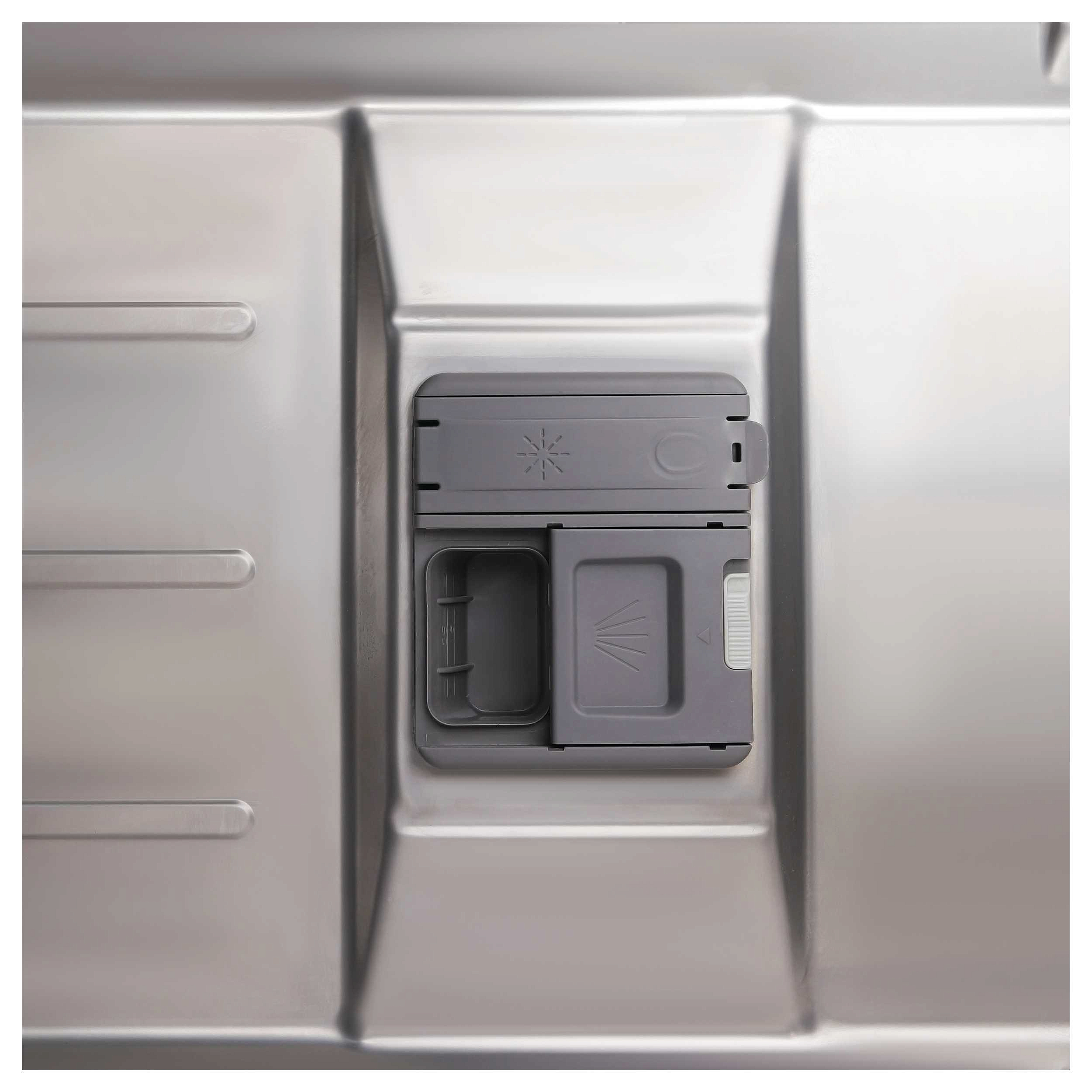 Для мытья посуды имеется пять программ мытья: от стандартной, быстрой и интенсивной до половинной и длительной (90 минут) мойки. Чтобы пользователю было удобно, имеется возможность использовать моющие средства All in 1, есть таймер отсрочки запуска от трех до девяти часов. Тип управления — электронный, с помощью закрытой панель управления можно включать и выключать устройство, активировать половинную загрузку или любой другой режим. Дисплей — жидкокристаллический, он показывает информацию четко и ярко. Об окончании процесса сообщает звуковой сигнал, есть индикаторы наличия соли и ополаскивателя.