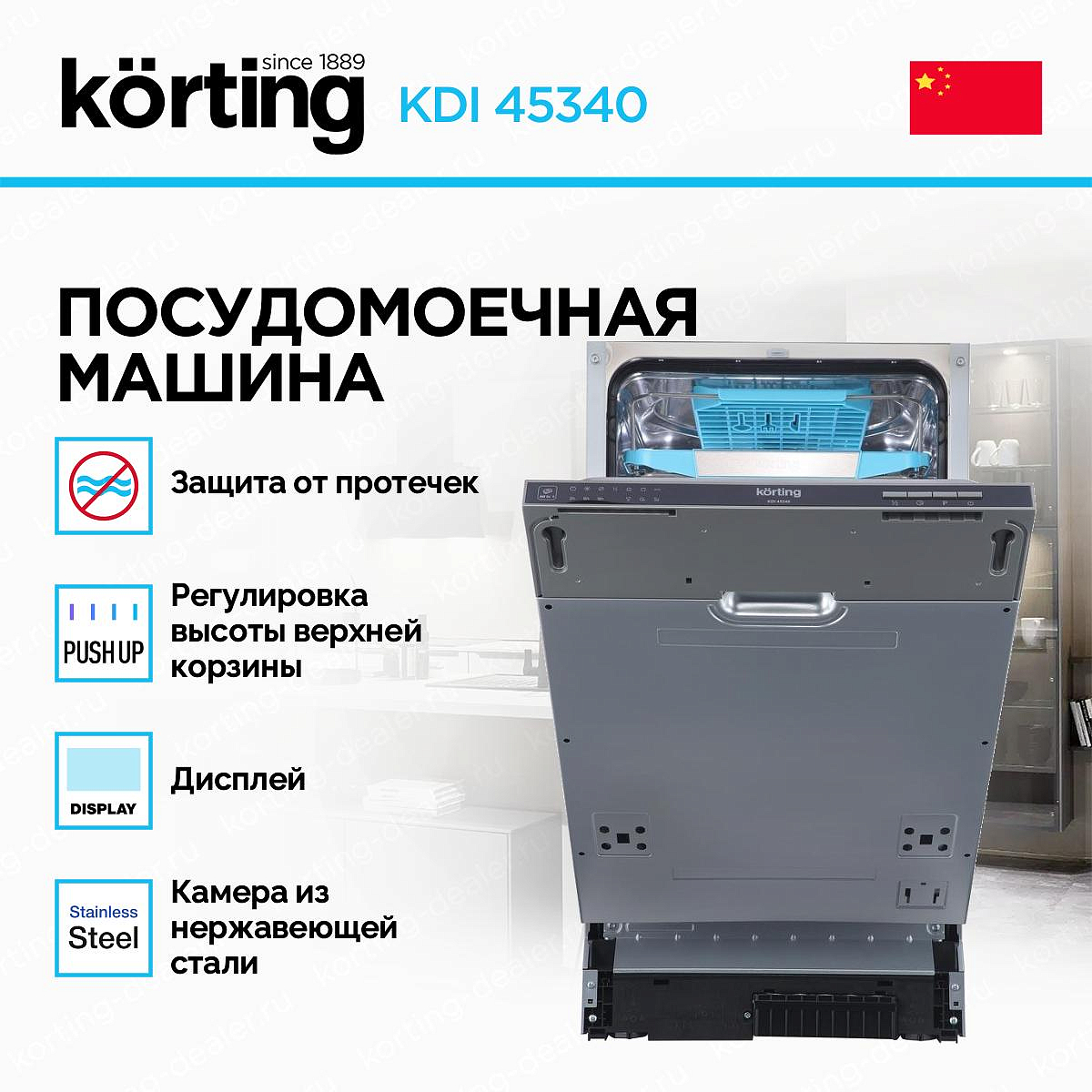 Для современной кухни, где важна каждая деталь, встраиваемая техника становится идеальным решением. Она позволяет сохранить чистоту линий и целостность интерьера, не жертвуя функциональностью. Модель Korting KDI 45340 — это встраиваемая узкая посудомоечная машина шириной 44,9 см, которая сочетает в себе компактные размеры и расширенный набор возможностей. Она вмещает до 10 комплектов посуды, что делает ее идеальным выбором для семьи из 3–4 человек, а наличие 6 программ мойки, включая бережную для стекла, и индикатора «Луч на полу» выводит удобство использования на новый уровень.