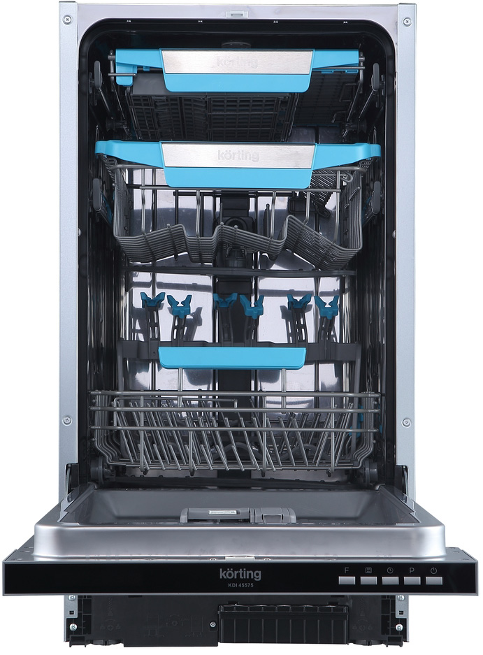Встраиваемая посудомоечная машина Korting KDI 45575 с шириной корпуса 45 см предназначена для небольших кухонь. Она рассчитана на десять комплектов. Она выполнена в тёмно-сером цвете, поэтому отлично впишется в любой интерьер.