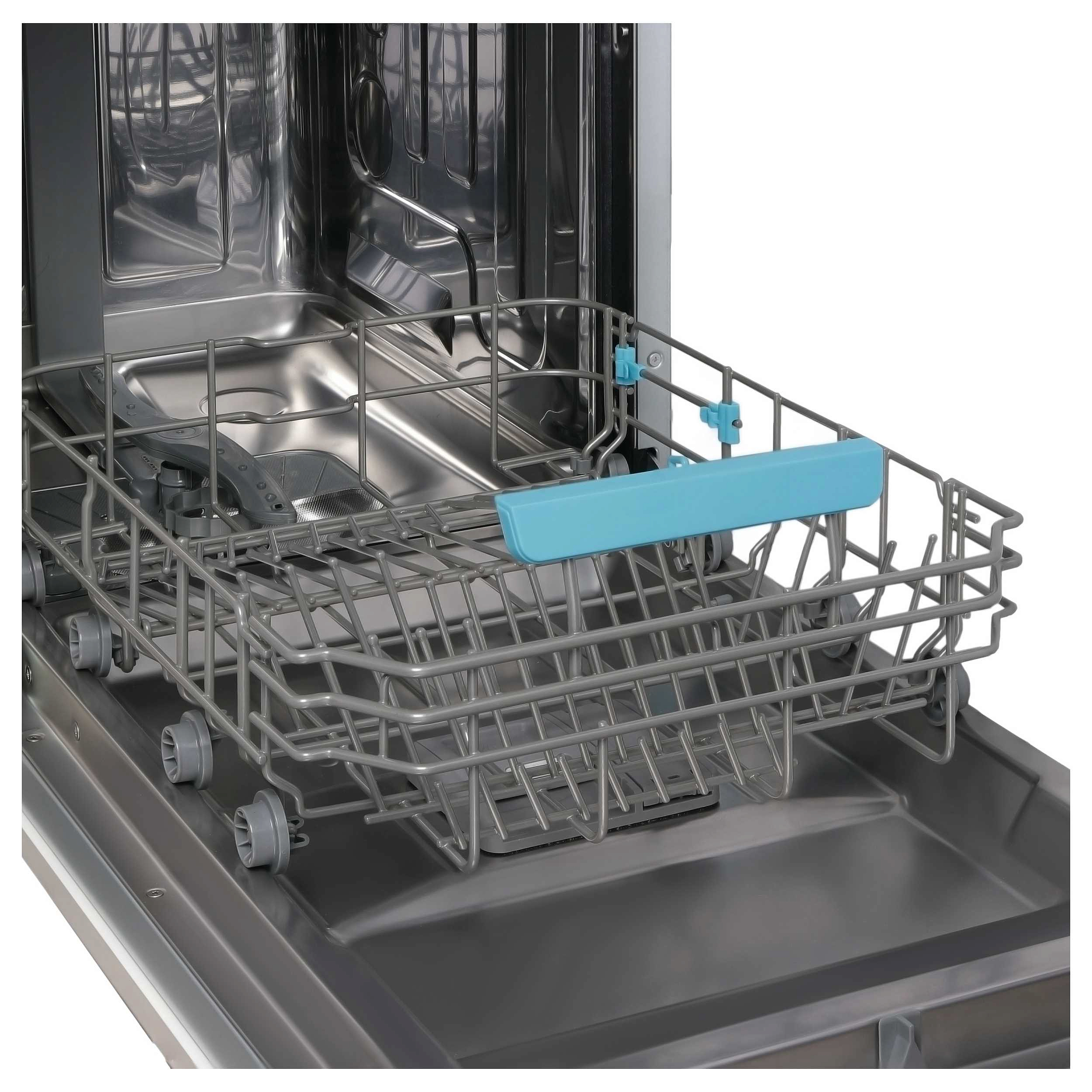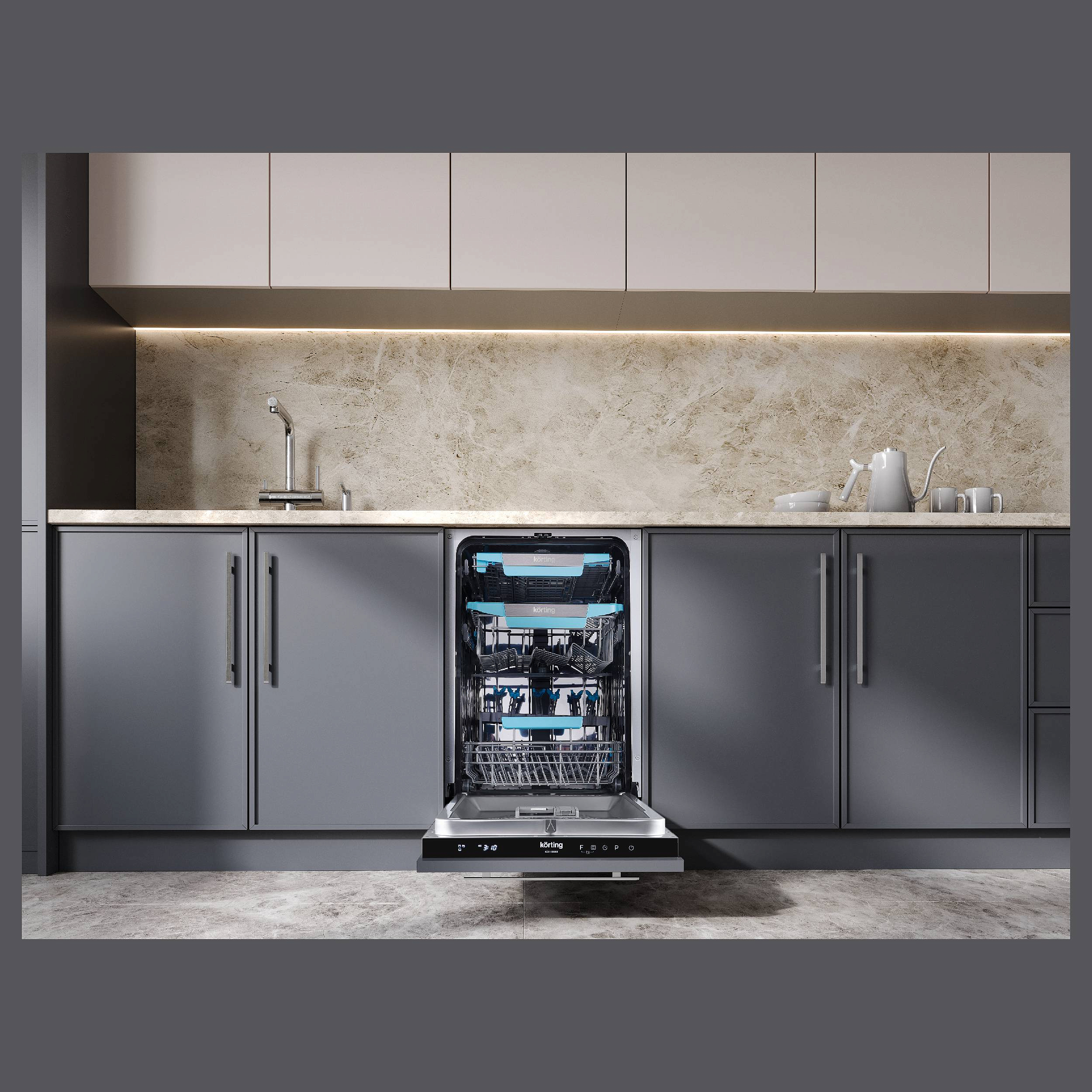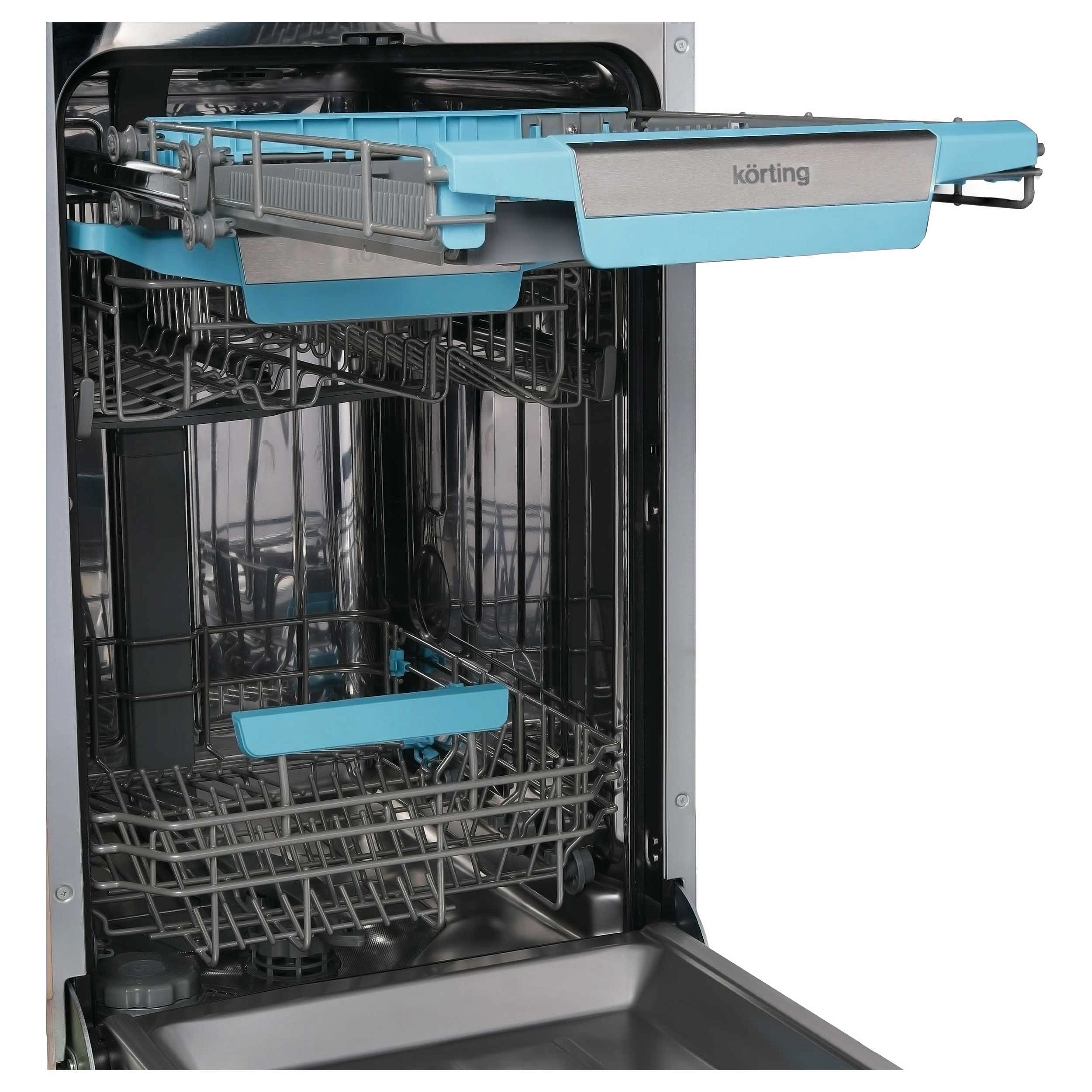 Встраиваемая посудомоечная машина Korting KDI 45985 подойдёт для семьи из четырёх человек, а также отлично впишется небольшую кухню или студию за счёт своих габаритов: ширина — 44,8 см, высота — 81,5-87,5 см, глубина — 55 см.
