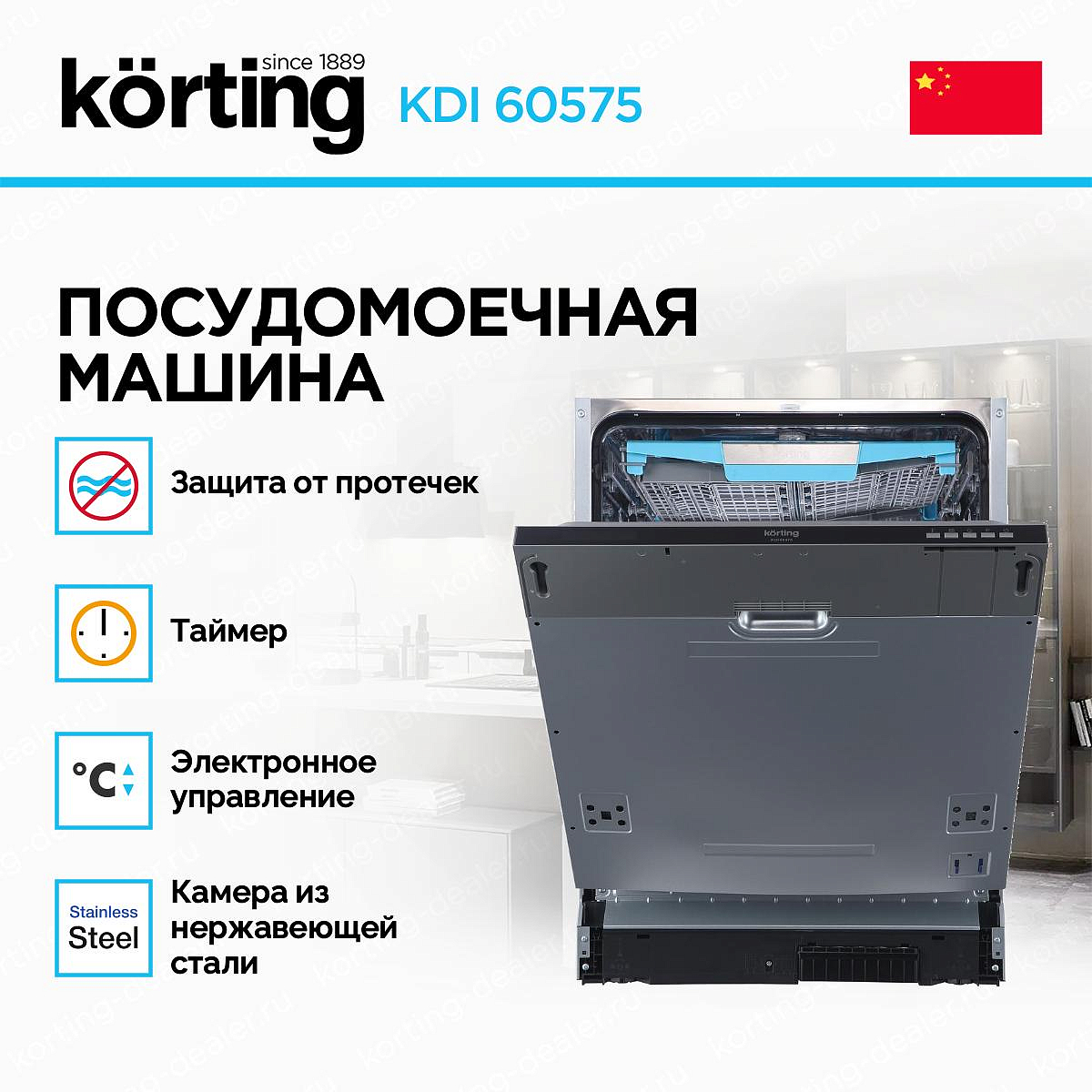 Встраиваемая посудомоечная машина Korting KDI 60575 отлично впишется в любой интерьер, главное — правильно выбрать место, чтобы подвести коммуникации. Устанавливается в нишу целиком, полностью закрывается декоративной панелью. Имеет стандартные размеры, поэтому может не поместиться на очень маленькой кухне. В камеру можно загрузить ограниченное число комплектов: 14 шт.