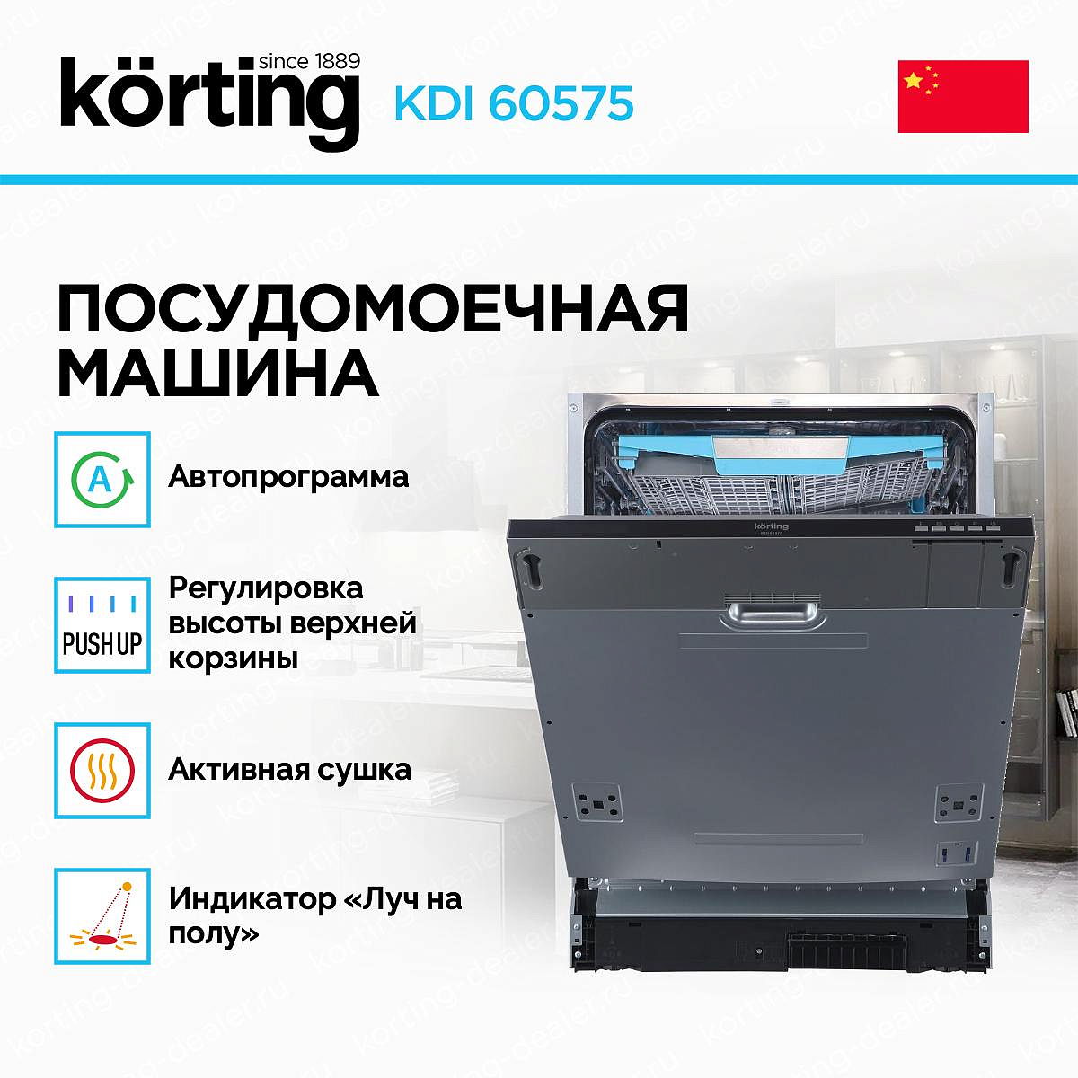 Korting KDI 60575 оснащена набором передовых функций, которые делают процесс мытья посуды максимально комфортным, эффективным и экономичным. Центральное место занимает автопрограмма (Auto) — интеллектуальный режим, который с помощью аквасенсора определяет степень загрязнения посуды и количество загрузки. На основе полученных данных машина подбирает оптимальные параметры: время цикла (от 120 до 210 минут), температуру и расход воды. Это идеальное решение для повседневного использования, когда не нужно задумываться о выборе программы.