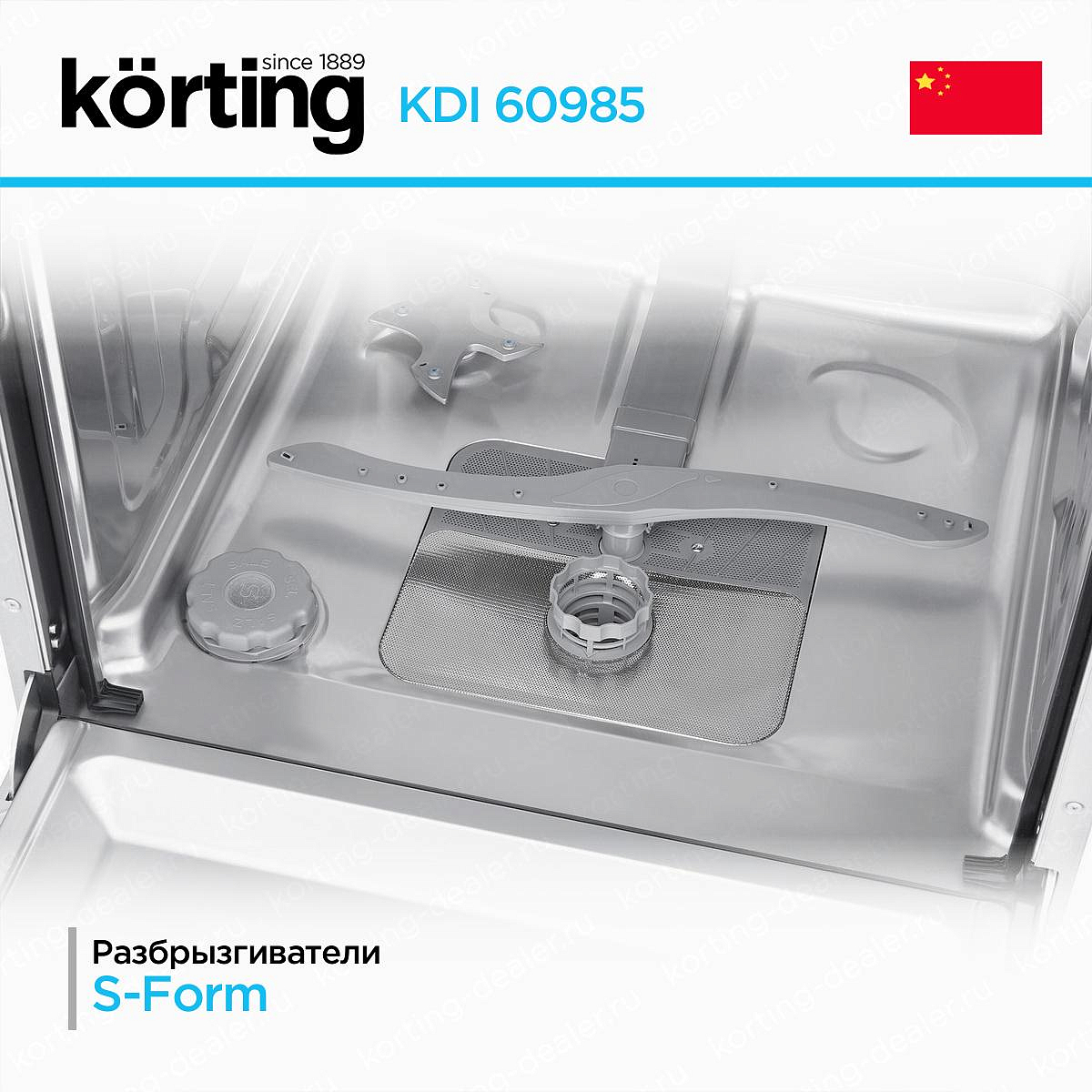Korting KDI 60985 оснащена набором передовых функций, которые делают процесс мытья посуды максимально комфортным, эффективным и экономичным. Центральное место занимает класс энергопотребления A+++ — самый высокий в европейской классификации. В сочетании с расходом воды всего 10 литров за цикл это обеспечивает минимальные эксплуатационные расходы и снижение нагрузки на окружающую среду.