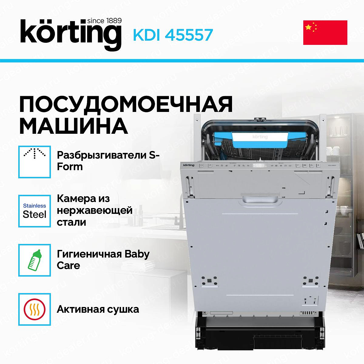 В современном мире, где забота о здоровье семьи выходит на первый план, особенно ценятся приборы, которые обеспечивают не только чистоту, но и безопасность. Модель Korting KDI 45557 — это узкая встраиваемая посудомоечная машина шириной 44,9 см, которая предлагает вместительность 10 комплектов посуды в сочетании с расширенным набором гигиенических и интеллектуальных функций. Программа Baby Care, активная сушка ActiveDry, индикатор «Луч на полу» и 7 программ мойки делают ее идеальным выбором для семьи, где ценятся и эффективность, и забота о здоровье.